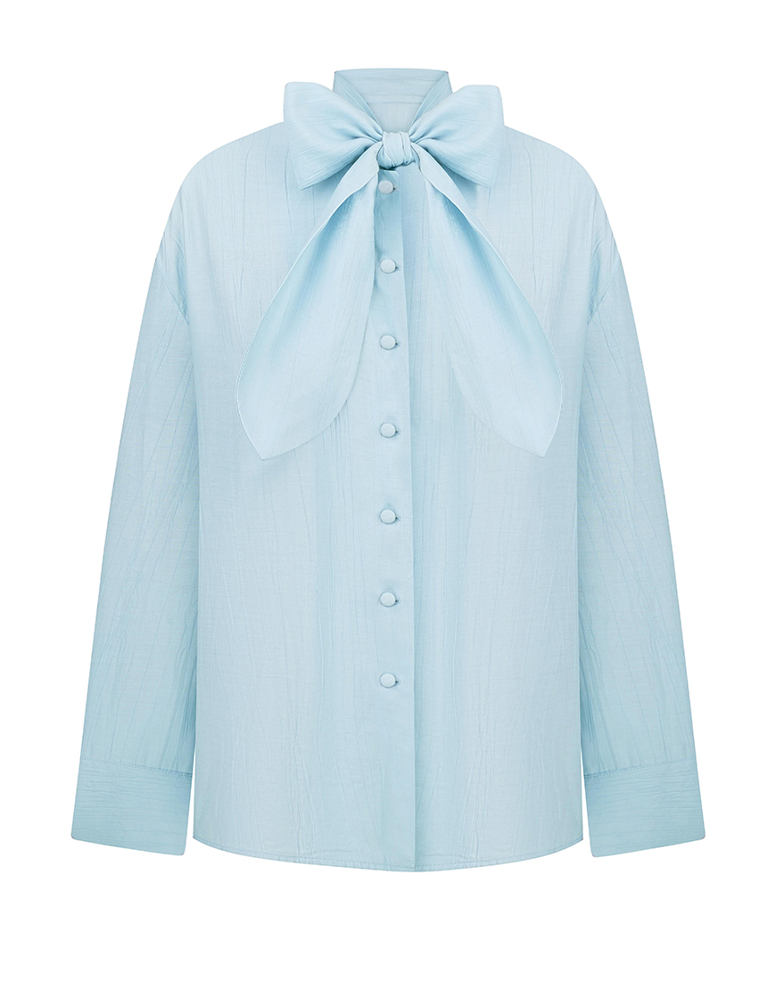 Комір, що переходить у витончені зав’язки, дозволяє експериментувати: бант, галстук або м’яке драпірування — щоразу нове втілення стилю.