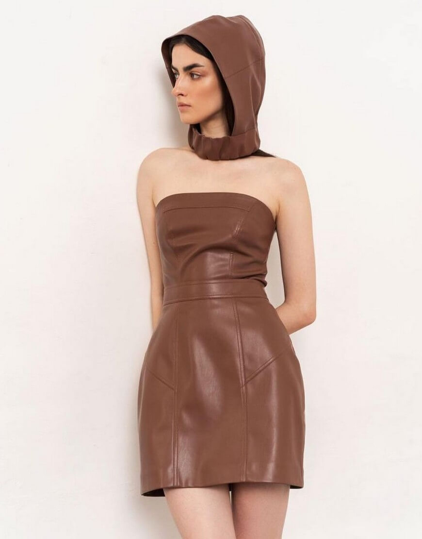 Спідниця міні з еко-шкіри. Декоративні рельєфи по довжині підкреслюють жіночний силует