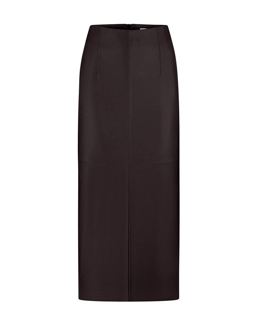 Класична спідниця,виконана з екошкіри. Довжина міді. Застібка на блискавці позаду.