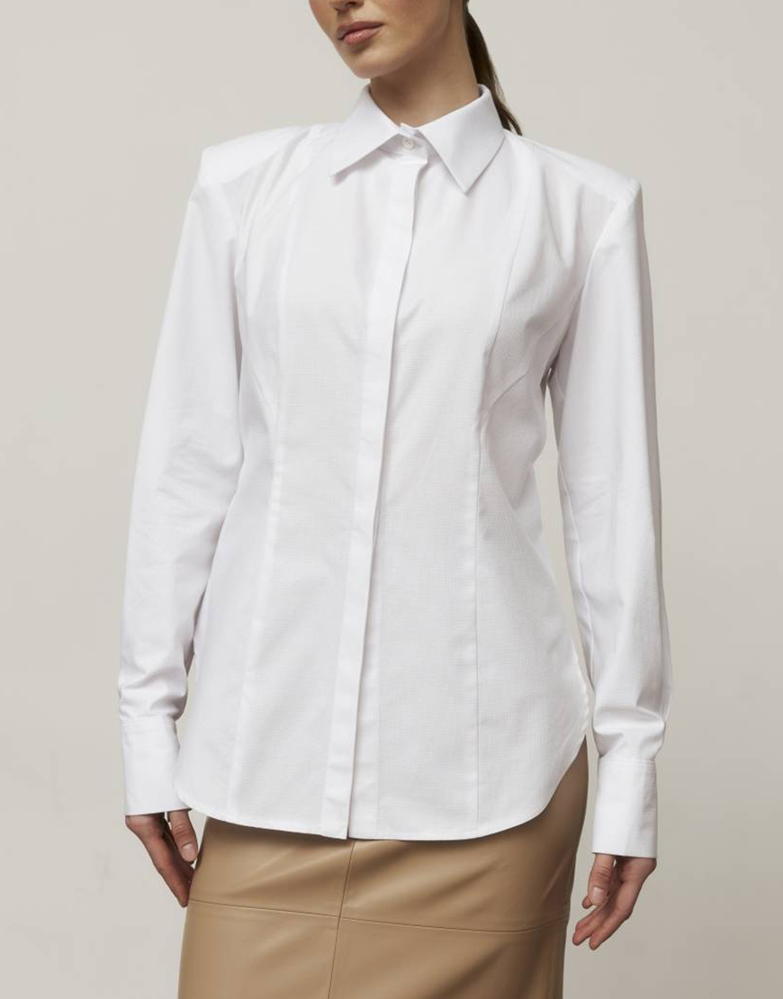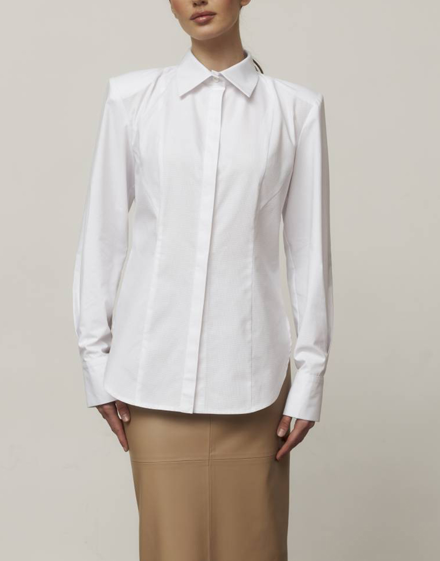 Доставка впродовж 1-2 робочих днівСорчка прителеного силуету з розширеною лінією плеча. Модель має елегантні декоративні лінії, що вдало підкреслює фігуру. Застібається на гудзики