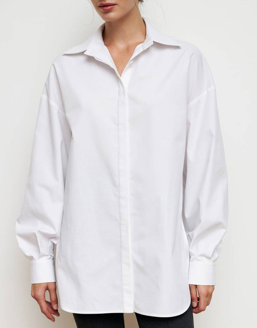 Доставка впродовж 1-2 робочих днівСорочка з обʼємними рукавами з текстурного котону зі схованими гудзиками. Закруглені знизу розрізи по боках. Класичний комір та манжети. Onesize
