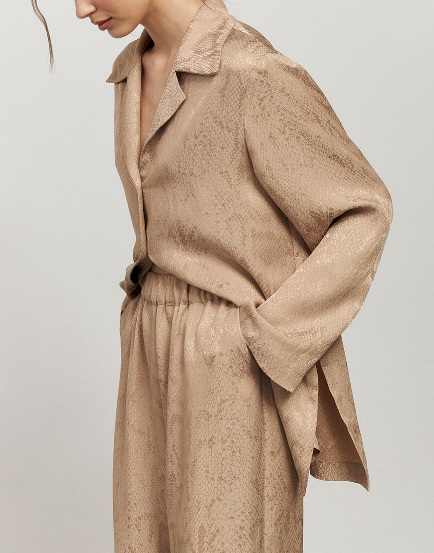 Бежева сорочка з анімалістичним принтом рептилія