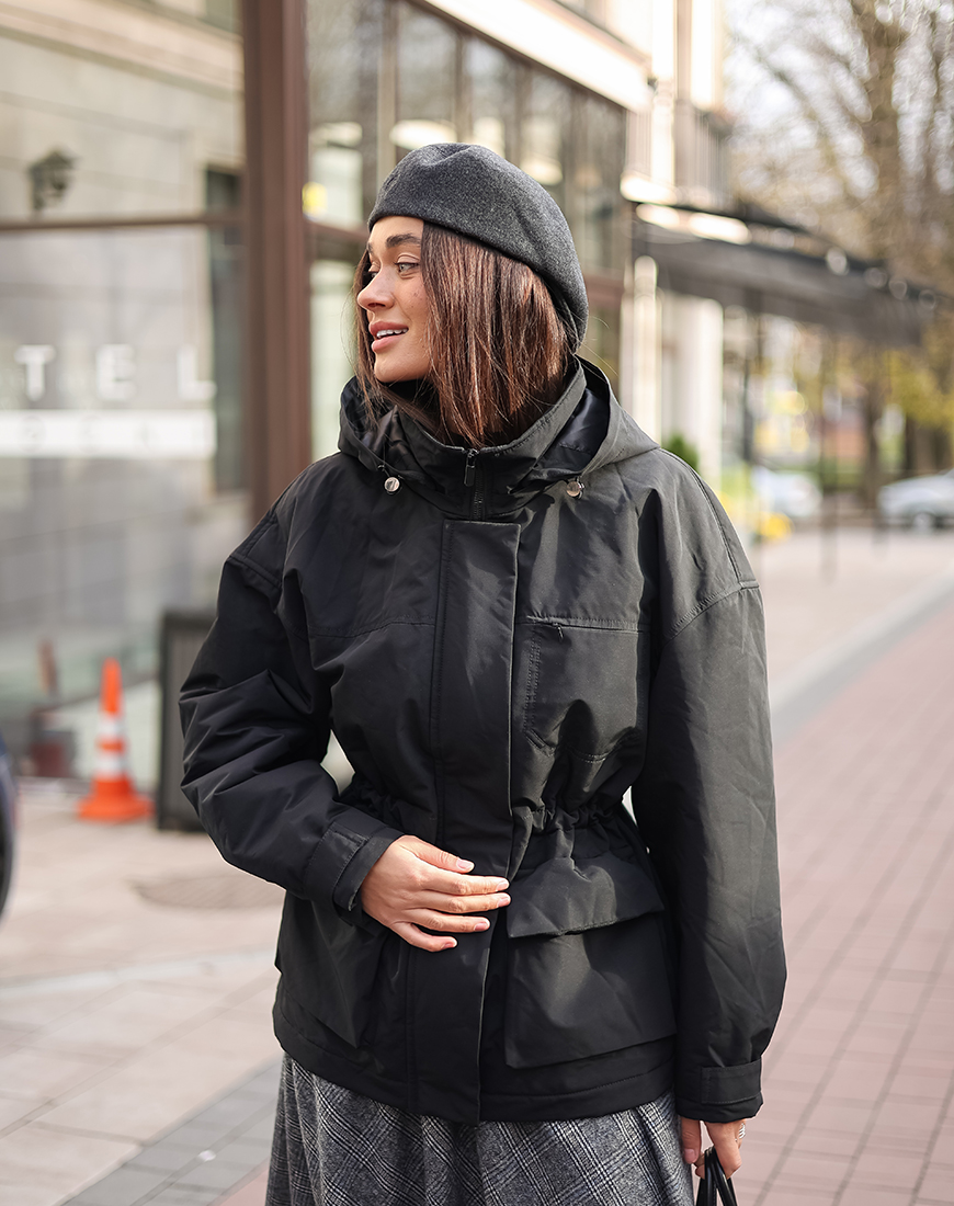 Доставка впродовж 2-5 робочих днівКуртка прямого крою зі зйомним капюшоном. Ззовні три функціональні кришені + одна внутрішня, низ рукава регулюється хлястиком на кнопках, внутрішня куліса регулює обʼєм талії. Розрахована на температуру від 0 до +10 градусів.