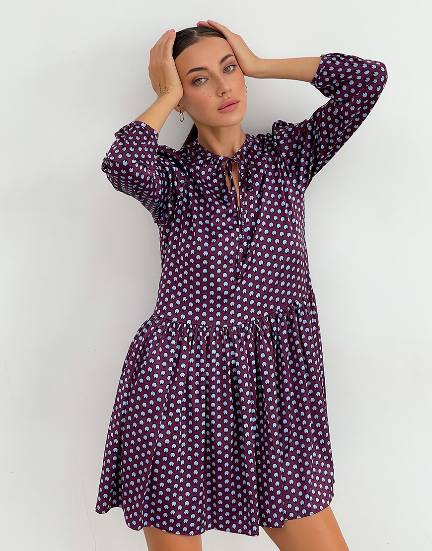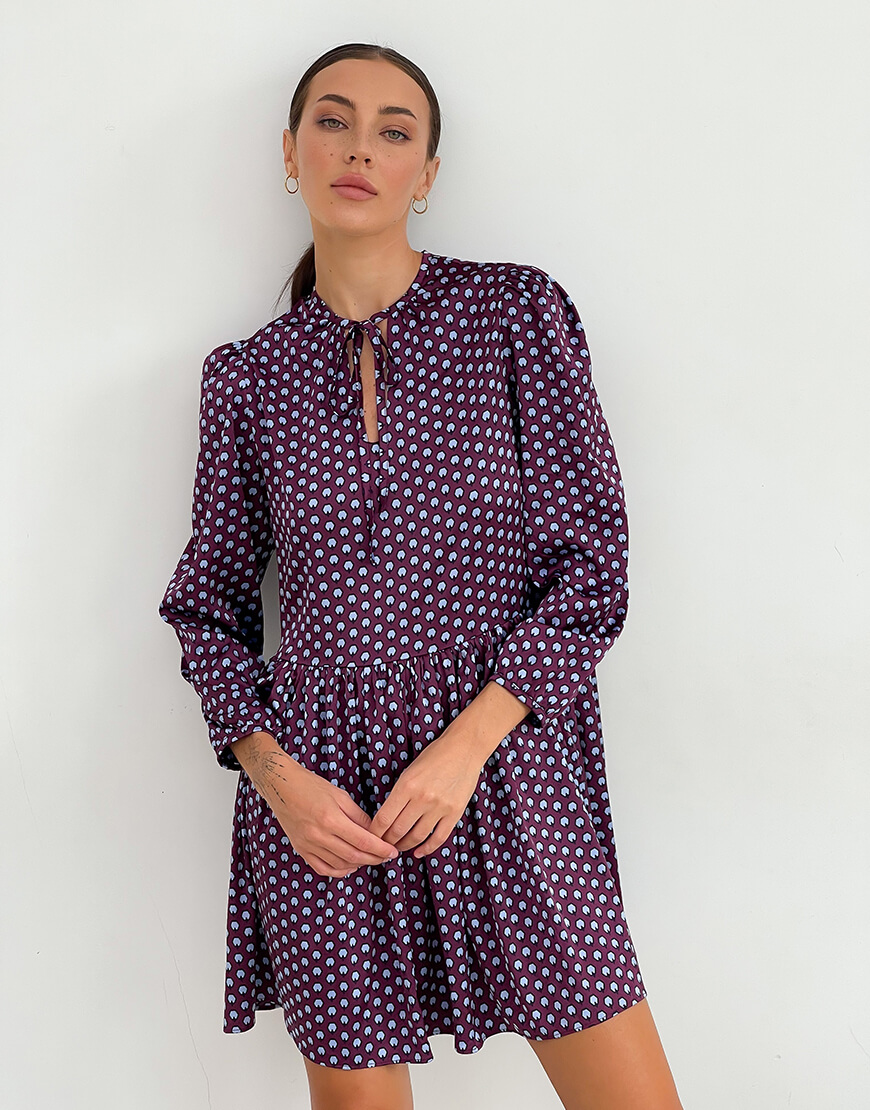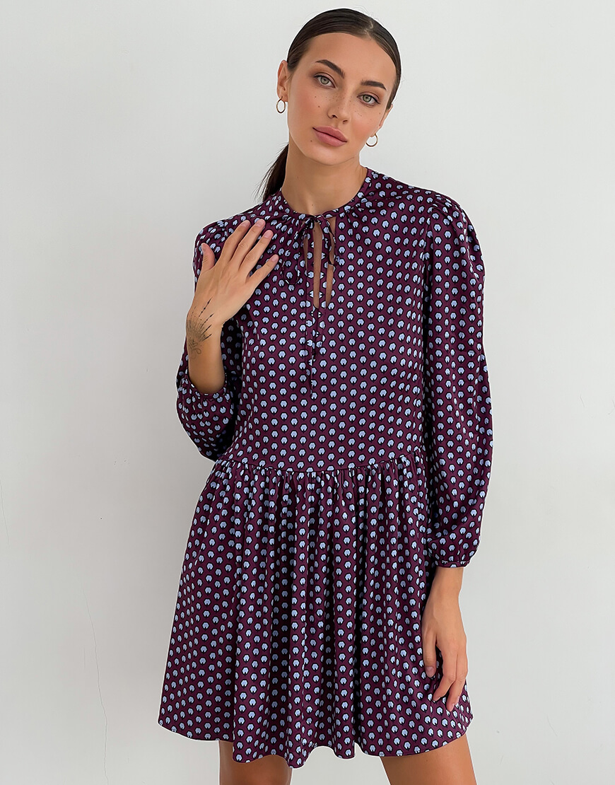 Доставка в течение 3-5 рабочих днейСукня міні вільного крою з принтом, зав’язочкі на шиї