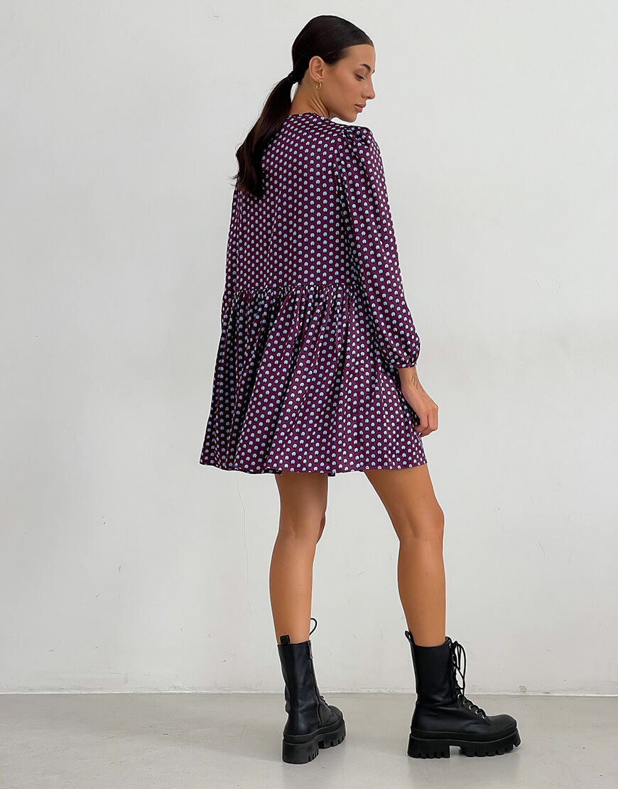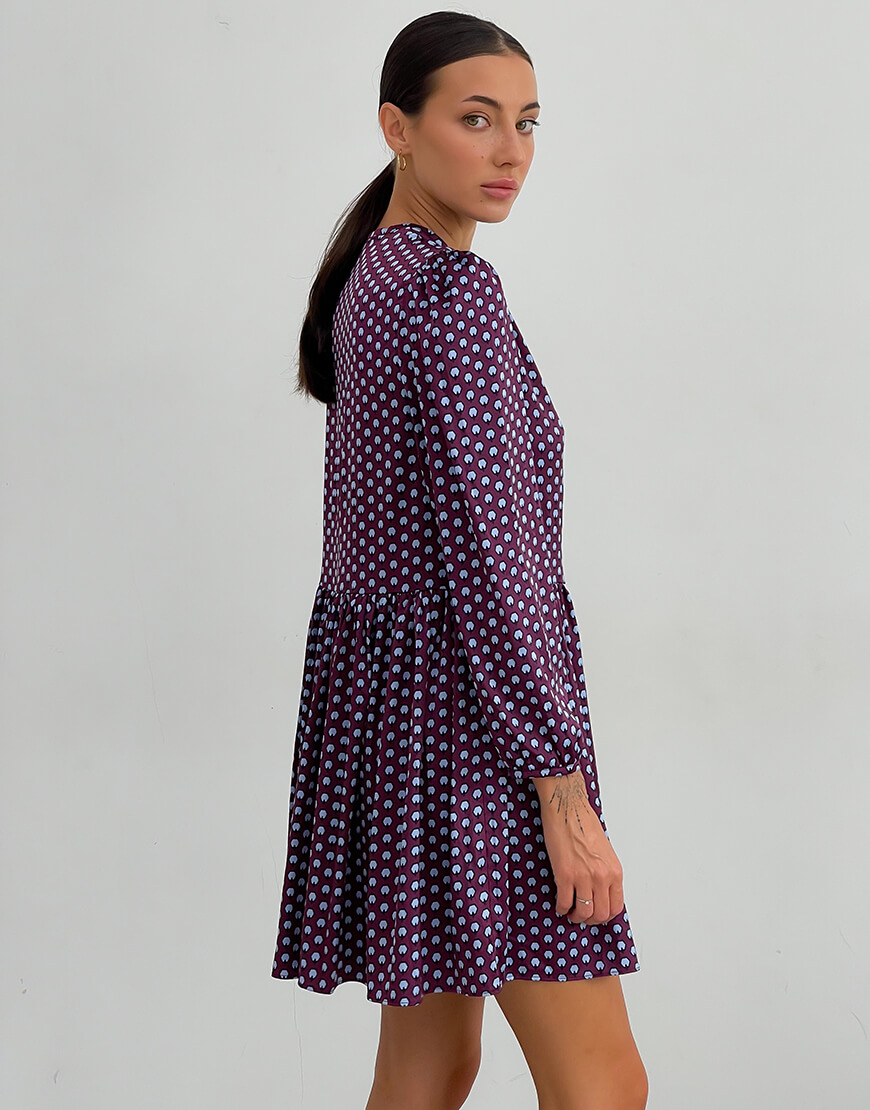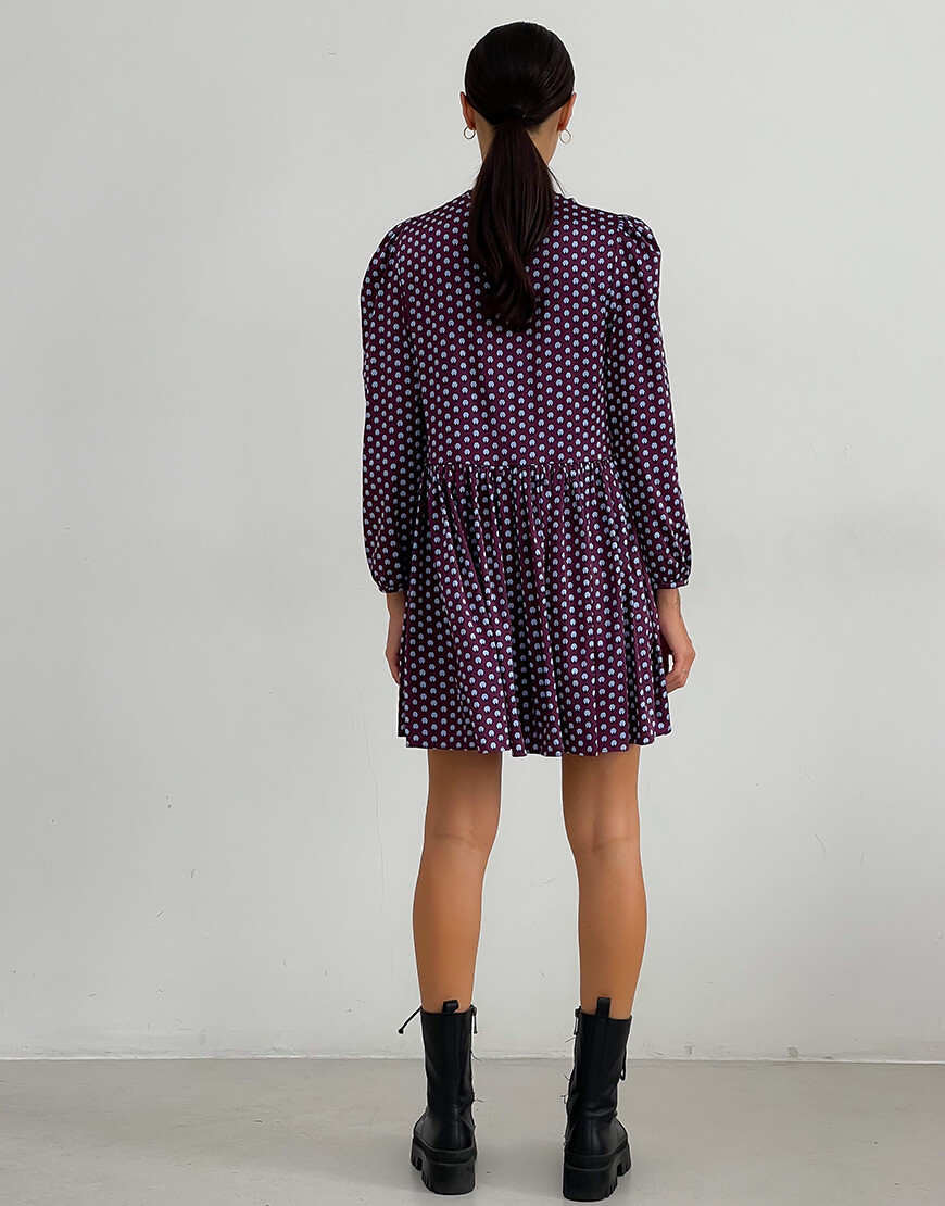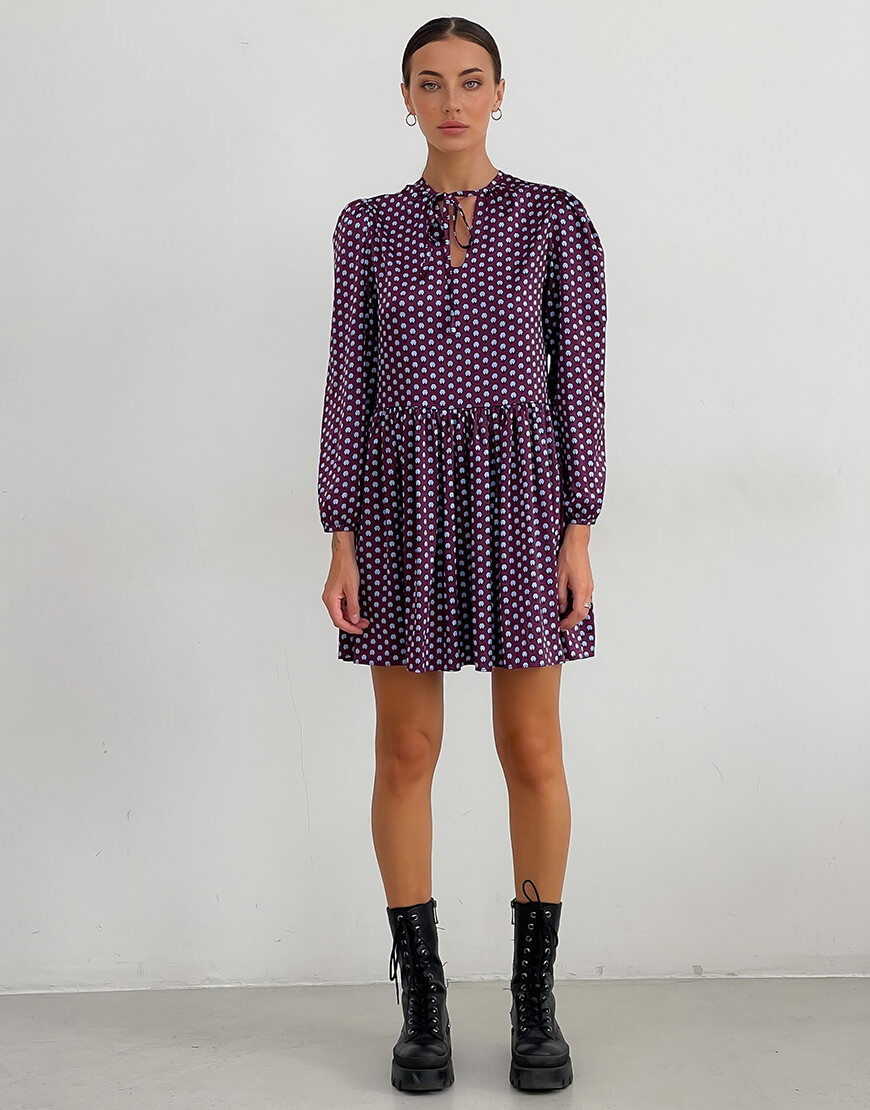 Доставка в течение 3-5 рабочих днейСукня міні вільного крою з принтом, зав’язочкі на шиї