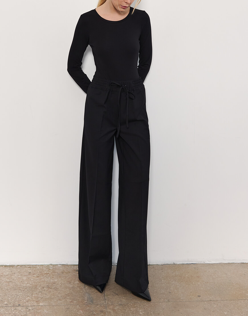 Доставка впродовж 2-14 робочих днівЧорні прямі брюки з поясом на резинці