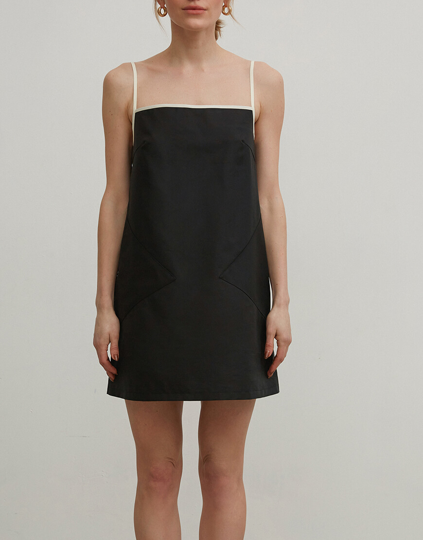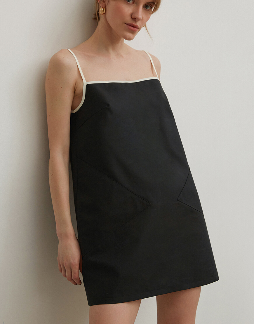 Сукня коротка з бавовни з кишенями, контрастні деталі