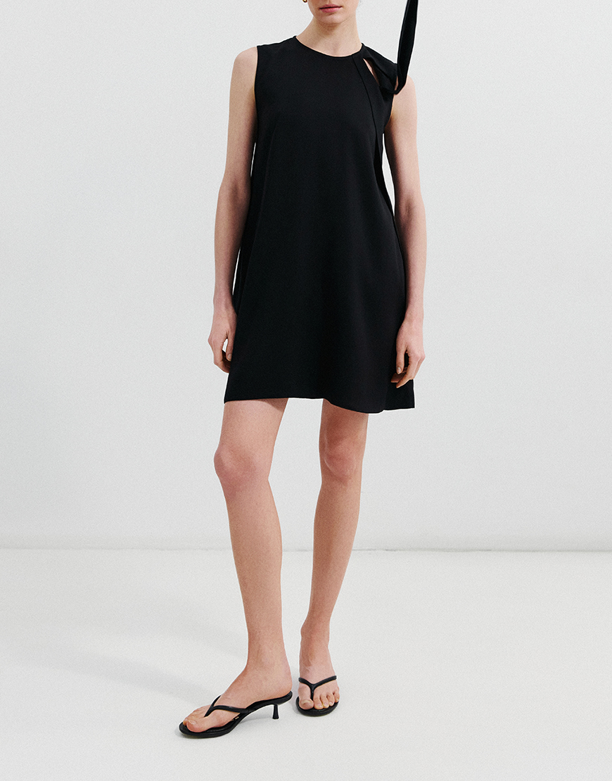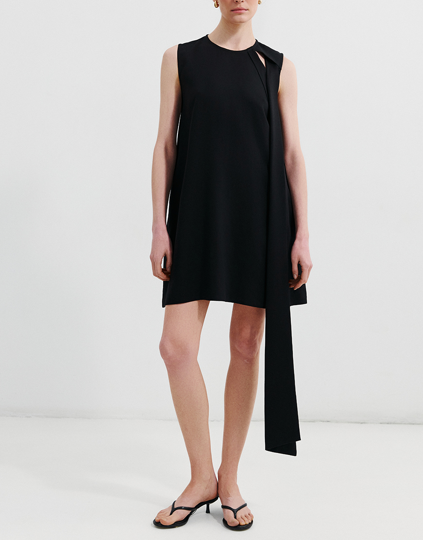 Міні-сукня з тенселу з кишенями та декоративною стрічкою