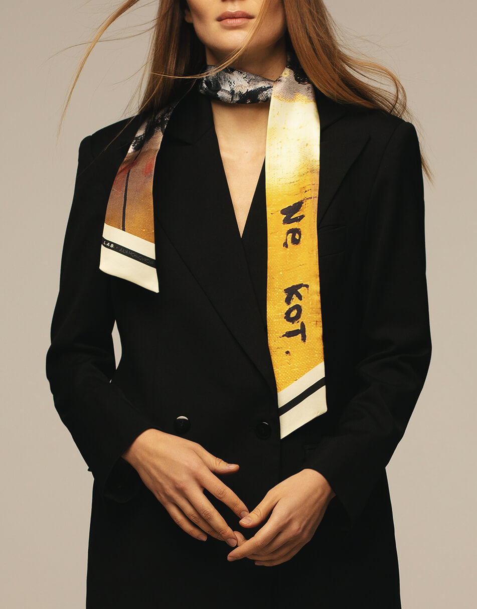 Доставка впродовж 2-5 робочих днівШовковий твіллі з арт-колаборації з зображенням картини. Голос мистецтва все голосніше звучить на різних платформах – і бренд L.A.B. by Ternovskaya вирішив використати power of art для привернення уваги до теми соціальної екології. Створювачки бренду, сестри Ольга та Анастасія, вже випустили колекцію Sapiens, натхненну зв’язком людини і природи. Меседж про те, що сучасні сапієнси відповідають за світ, в якому ми живемо, це не просто тема однієї колекції, це основа ДНК L.A.B. by Ternovskaya. Заручившись творчою підтримкою відомої сучасної художниці Юлії Моховикової, бренд збирає навколо себе ком’юніті однодумців. Нова капсула L.A.B. by Ternovskaya X Julia Mokhovikova порадує не лише еко-активістів, але й адептів сучасного мистецтва.