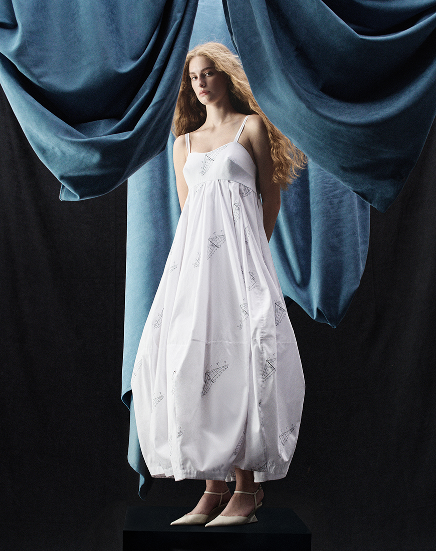 Доставка впродовж 2-7 робочих днівЛегка бавовняна сукня максі з ніжними бретелями та м’яко структурованим ліфом. Силует легко переходить від приталеного верху до об’ємної, повітряної спідниці, яка створює природний рух з кожним кроком. Вільний А-силует підвищує комфорт, зберігаючи елегантний, видовжений образ.