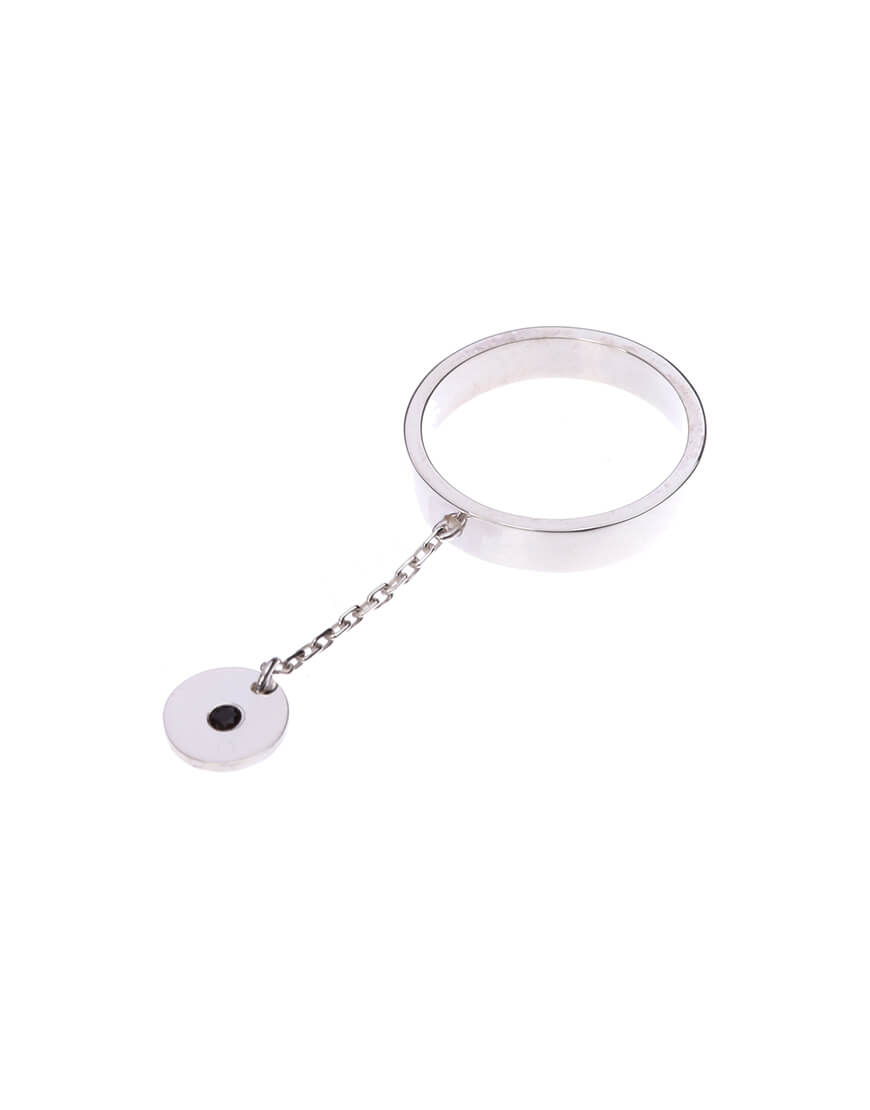 Каблучка з ланцюжком, диском та інкрустованим каменем.