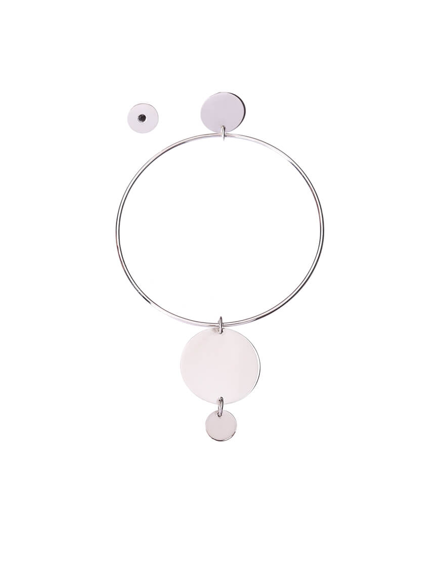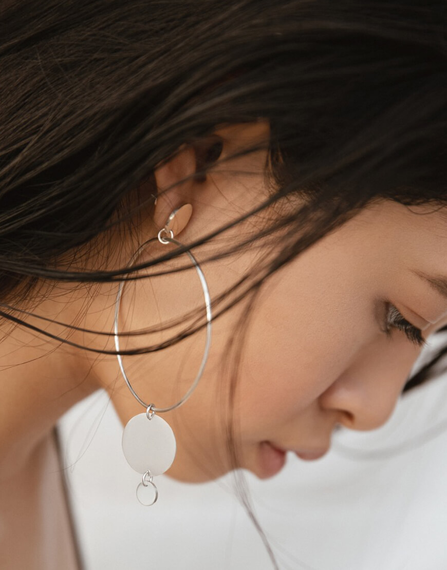 Асиметричні сережки з інкрустованим каменем та каскадом дисків та кілець.