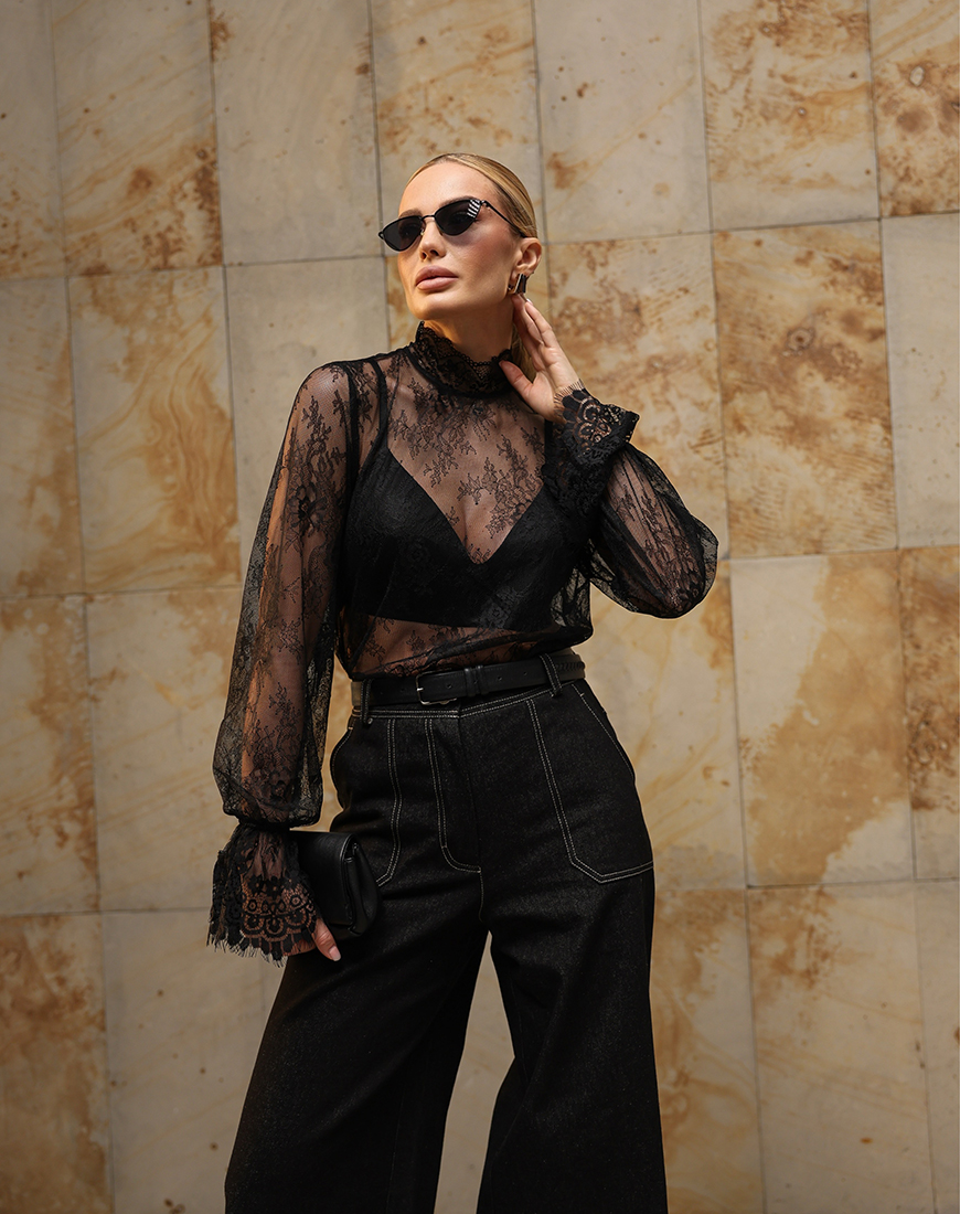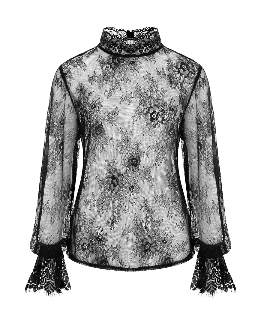 Доставка впродовж 2-5 робочих днівЛонг із французького мережива із коміром-стікою, позаду застібаєтьсяна на гудзик.