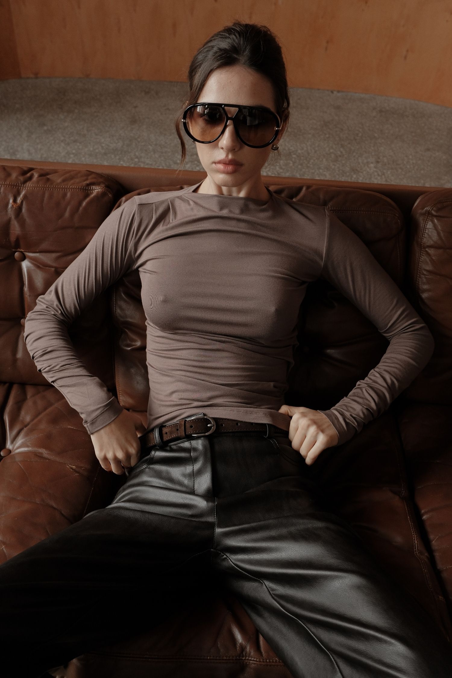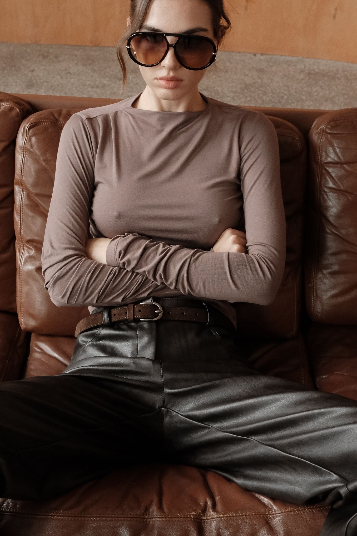 Лонгслів із складками капучино