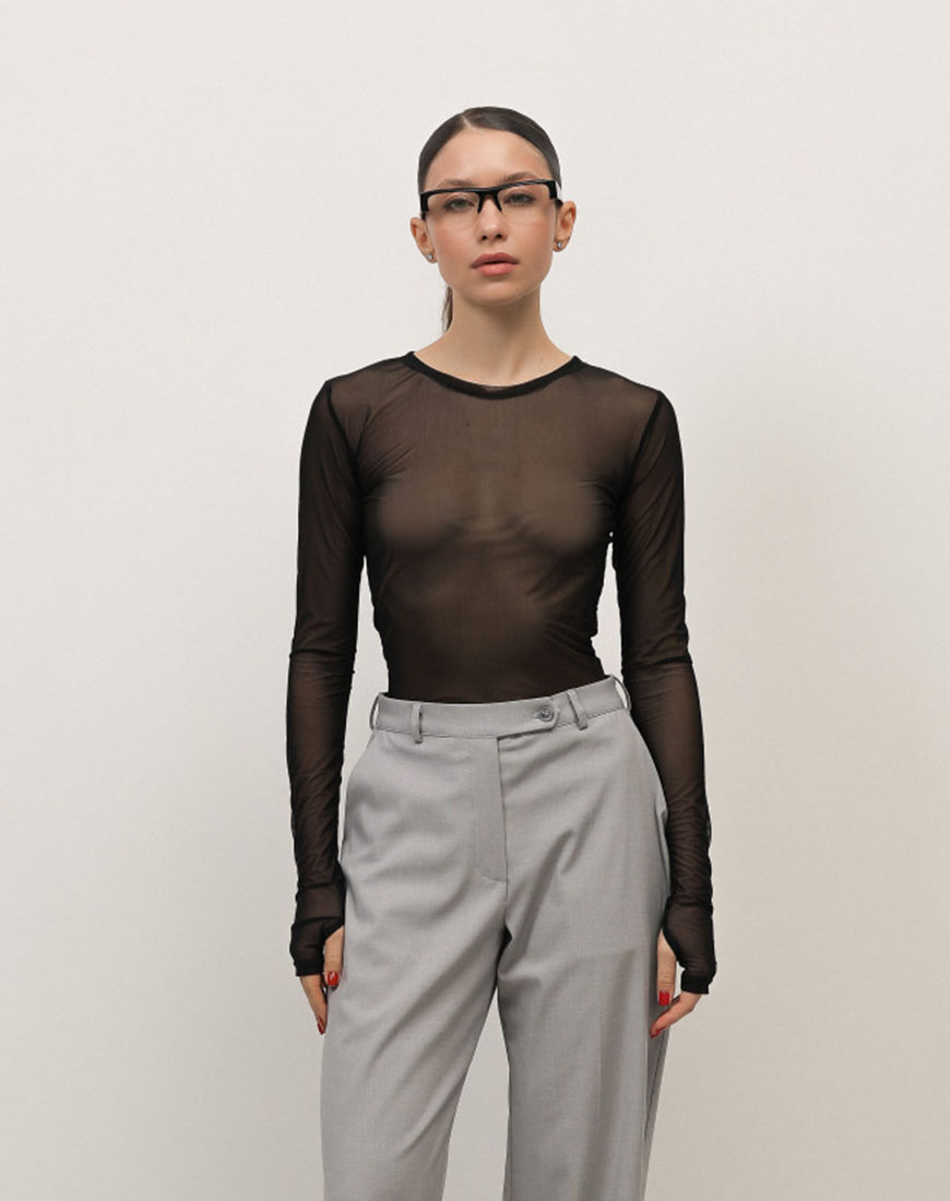 Легкий і стильний акцент у базовому гардеробі. Напівпрозора сітка створює ефектний, але делікатний образ, підкреслюючи силует і додаючи текстури.