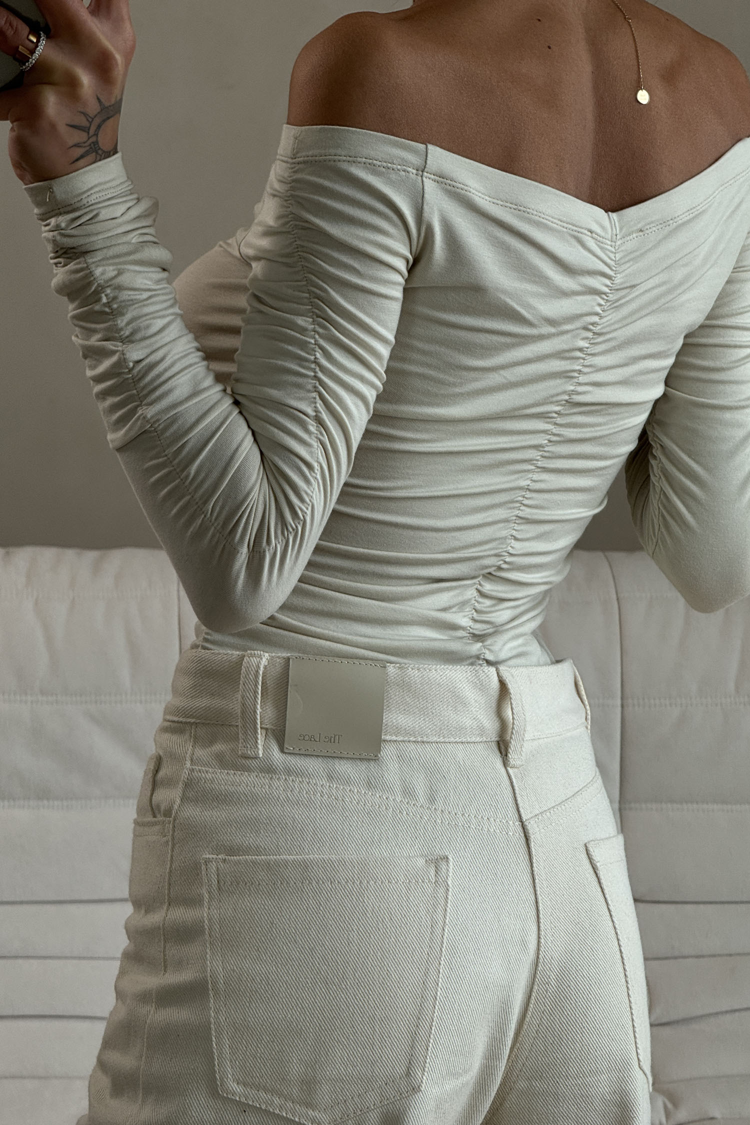 Лонгслів з драпіруванням айворі