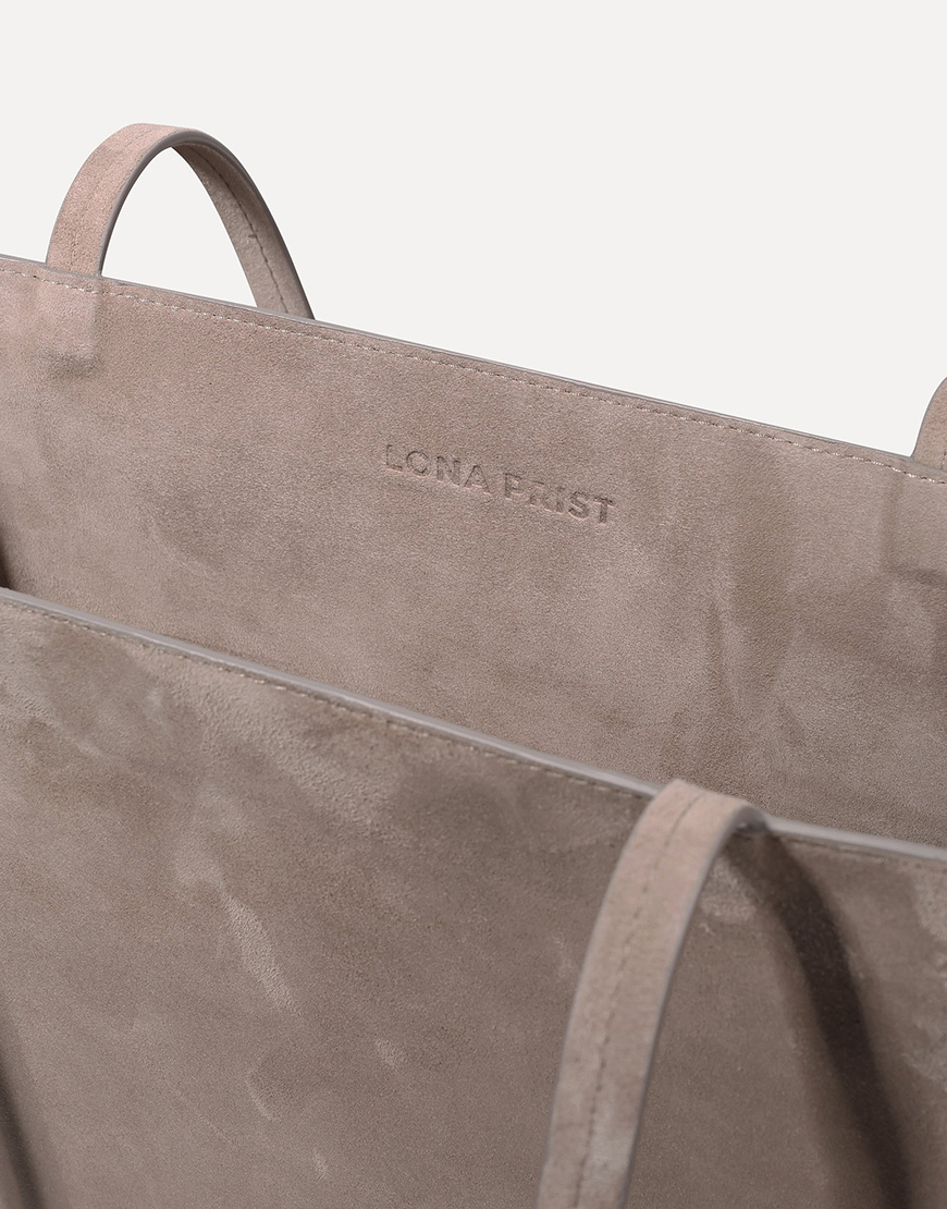 Доставка впродовж 5-7 робочих днівTote bag із натуральної замші, з замшевою підкладкою, срібною фурнітурою та магнітною застібкою.