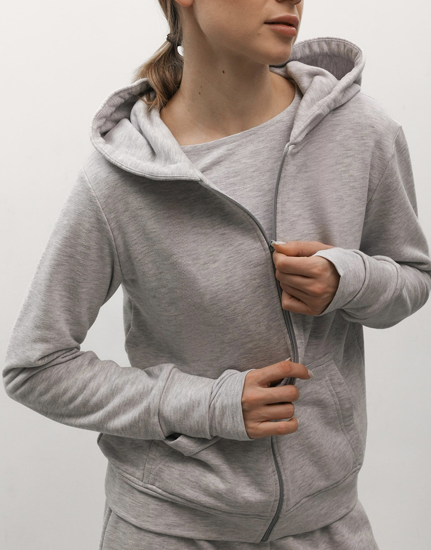 Худі зіп на флісі сірий меланж
