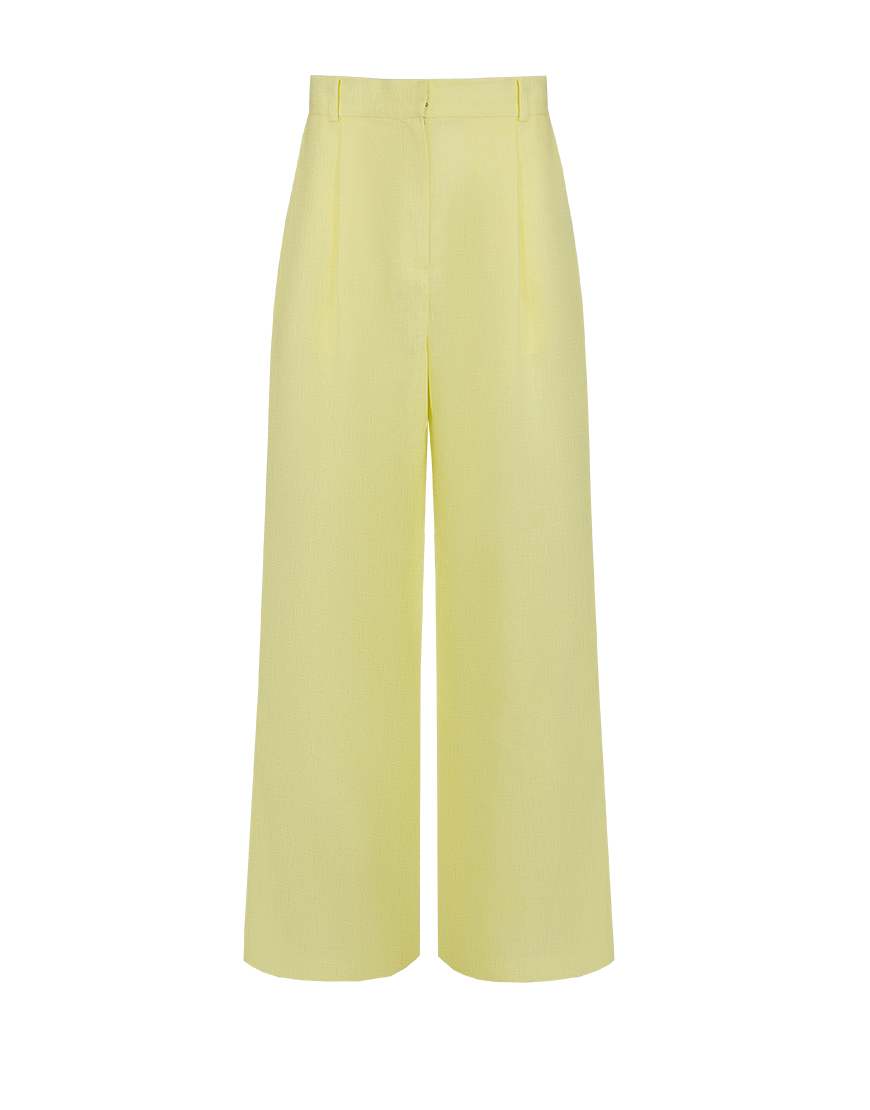 Штани палаццо льняні у пастельно-жовтому кольорі