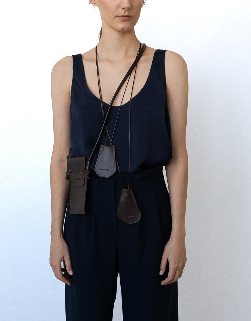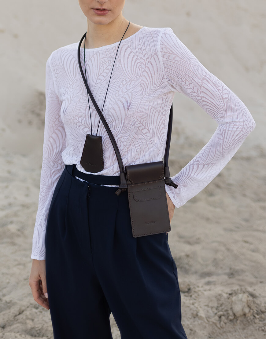 Код товару: 407892Шкіряна сумка-чохол у кольорі темний шоколад