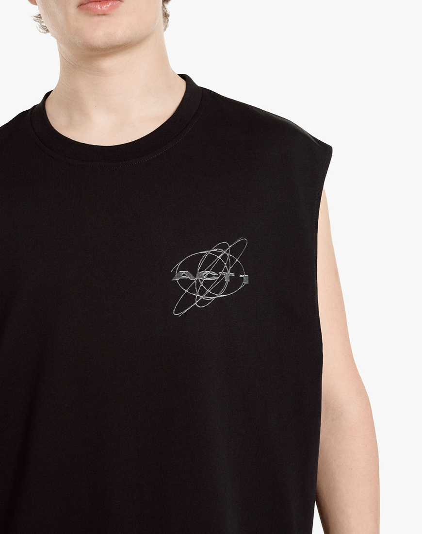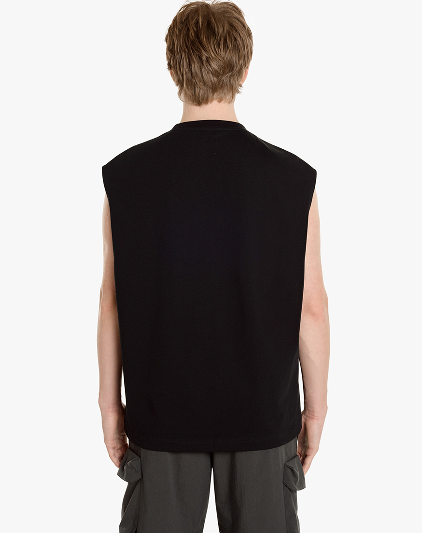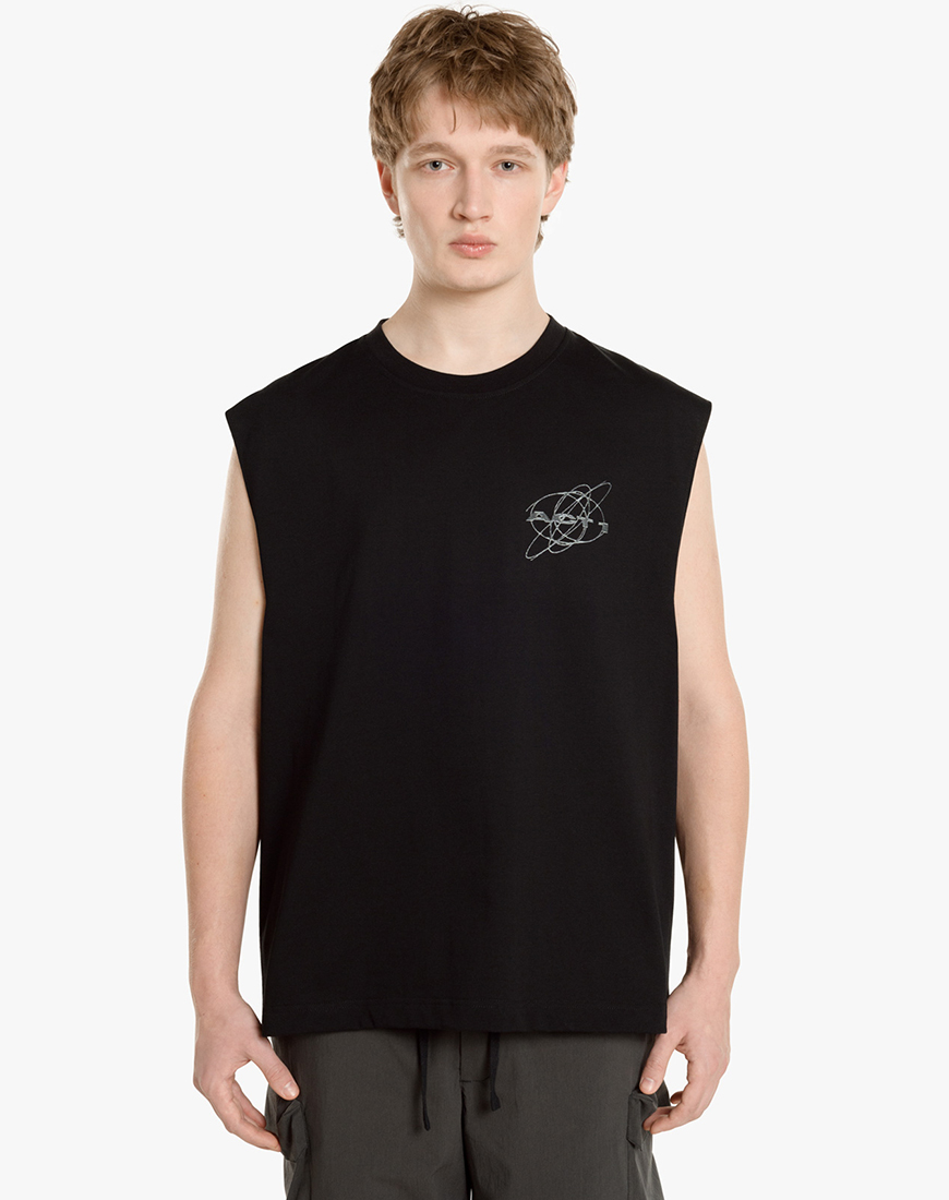 Чорна майка Oscilloscope у виконанні Heavy — це фундамент утилітарного гардероба, що поєднує лаконічність та високу якість виконання. Модель вільного крою виготовлена з важкої бавовни щільністю 270 г/м2, завдяки чому вона бездоганно тримає форму та має виразну структуру. Графічний принт на грудях у поєднанні з акцентним гумовим патчем у бічному шві додає виробу індивідуальності. Висока повітропроникність та щільна фактура трикотажу роблять цю майку самодостатнім елементом образу, що залишається актуальним незалежно від сезонних трендів.