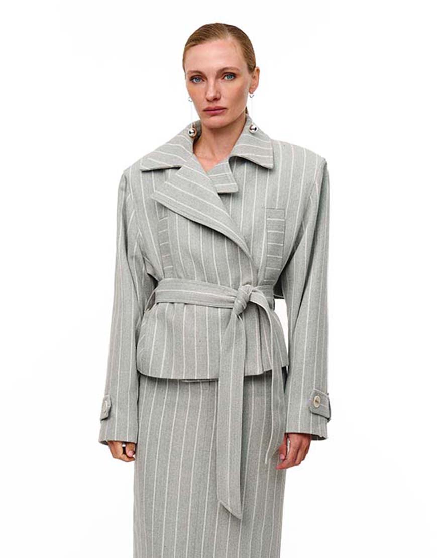 Доставка від 14 днівУкорочений тренч об’ємного, двобортного крою. Тренч з акцентними плечима. Виконаний на підкладці та накладними кишенями спереду. Доповнений коміром хлист, який закріплюється на брендових кнопках. Позаду тренч має відлітну кокетку. У комплекті йде пояс. Преміальна технологія виконання з усіма закритими швами.