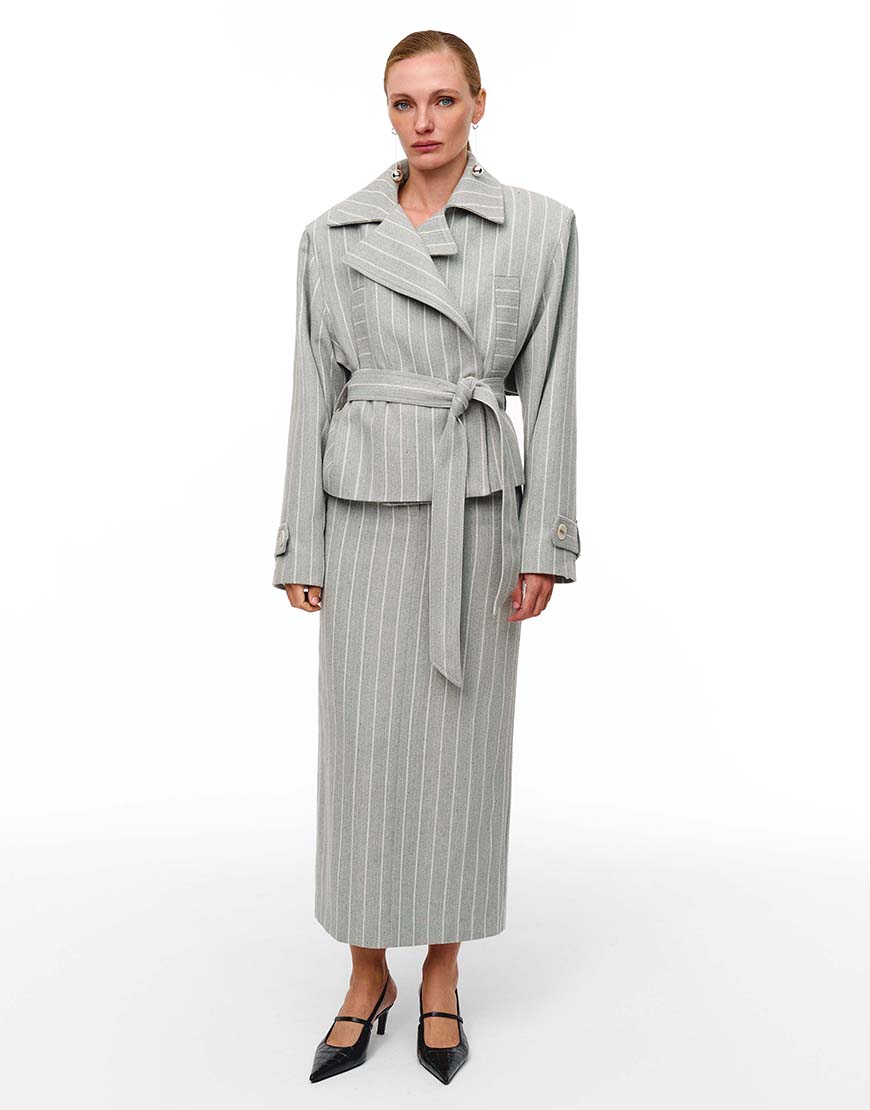 Доставка від 14 днівПряма спідниця максі з шліцею по спинці. Висока лінія талії. Застібається спереду на блискавку. Спідниця виконана з щільної тканини на підкладці. Довжина спідниці 99 см.