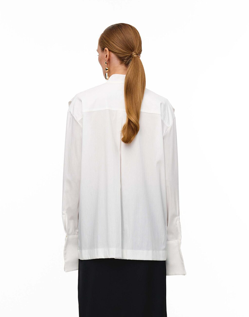 Сорочка вільного крою, оздоблена манішкою і застібається на гудзики. Манішка оздоблена дрібними складками ручної роботи. Має широкі манжети. Преміальна технологія виконання з усіма закритими швами.