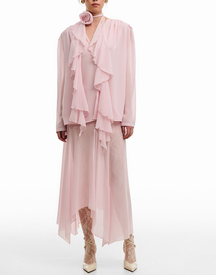 Доставка впродовж 2-10 робочих днівШифонова спідниця об’ємного крою. Спідниця з високою лінією талії, виконана на резинці. Крій спідниці по-косій. Преміальне виконання з усіма закритими швами.