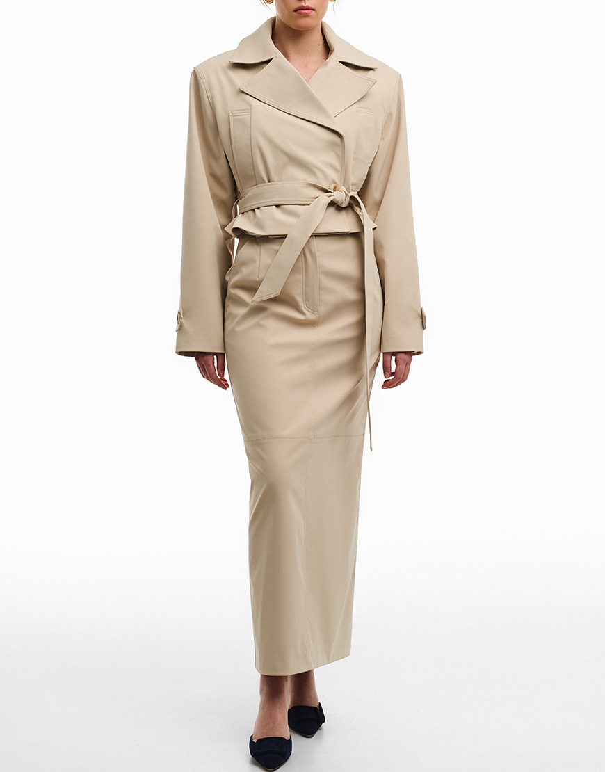 Доставка від 14 днівПряма спідниця максі з шліцою по спинці. Висока лінія талії. Застібається спереду на блискавку. Спідниця виконана з щільної бавовняної тканини на підкладці. Довжина спідниці 99 см.
