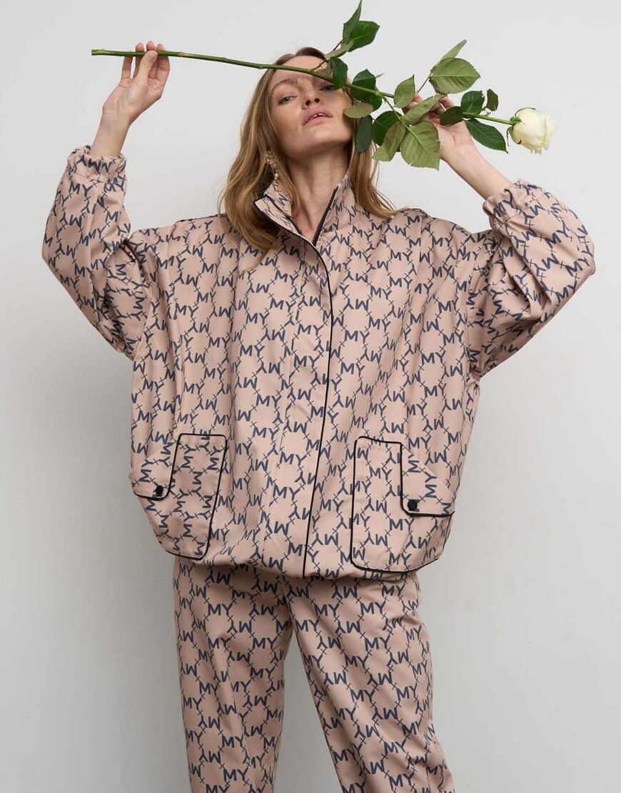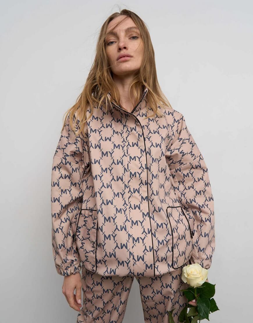 Подовжений бомбер об’ємного крою. Щільна бавовняна тканина з авторським принтом на основі логотипу бренду. Об’ємні накладні кишені спереду куртки. Бомбер виконано без підкладки, що надає йому легкості. Застібається на блискавку.