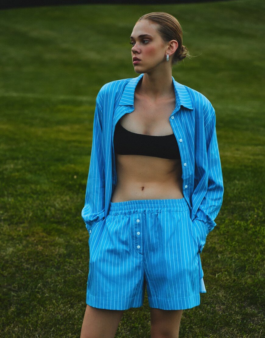 Шорти з м’якої та тонкої бавовняної тканини об’ємного крою. Висока лінія талії на резинці. Кишені по боках. Преміальна технологія виконання з усіма закритими швами.
