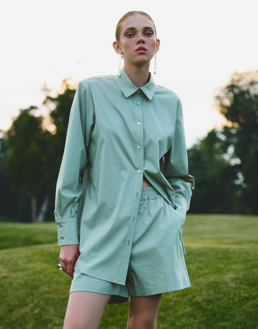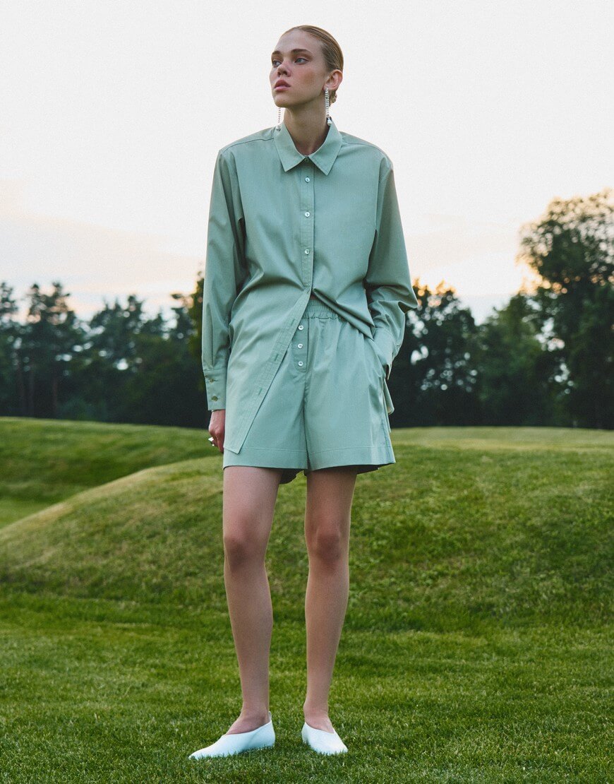 Шорти з м’якої та тонкої бавовняної тканини об’ємного крою. Висока лінія талії на резинці. Кишені по боках. Преміальна технологія виконання з усіма закритими швами.