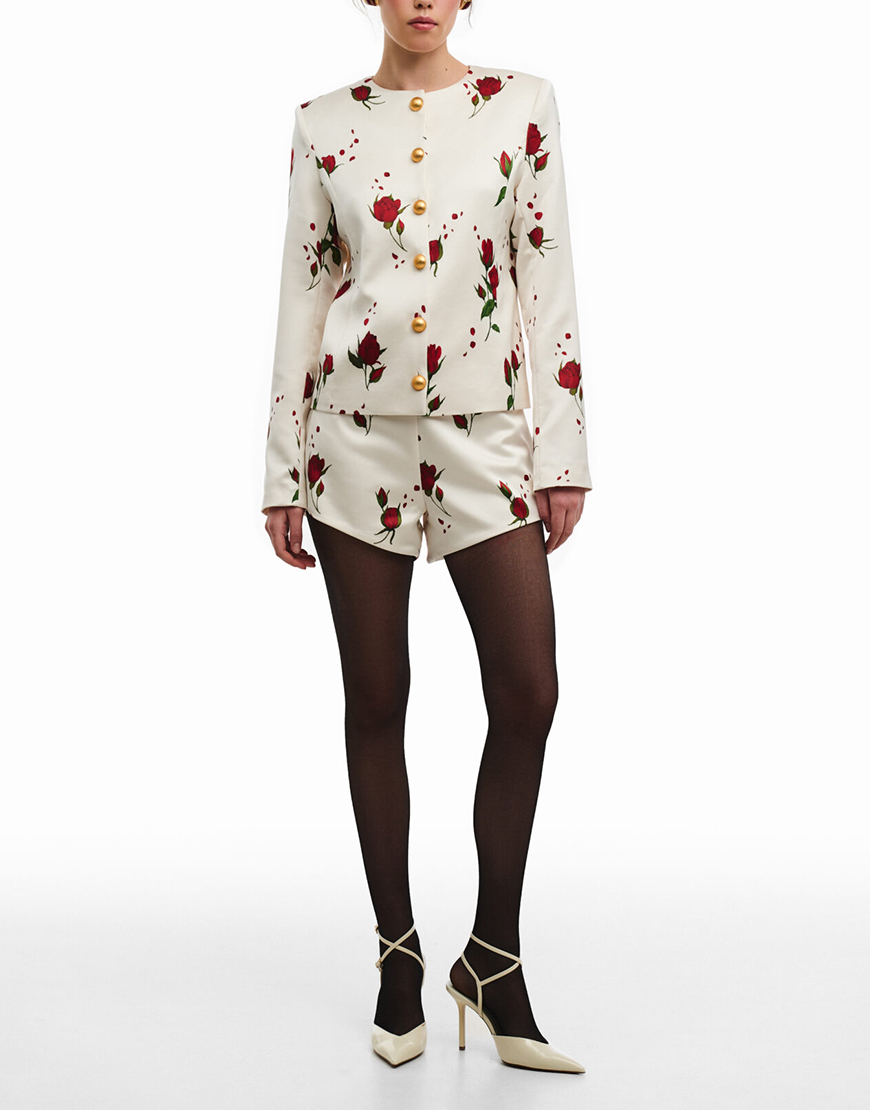 Доставка від 14 днівВкорочені шорти асиметричного крою з підкладкою. Застібаються на приховану блискавку збоку. Висока лінія талії підкреслює силует. Преміальна технологія виконання з усіма закритими швами. Авторський принт, створений спеціально для нової колекції.