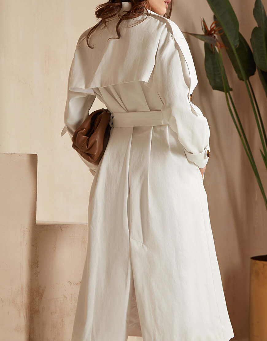 Бавовняний Oversized Тренч. Виконаний на підкладці. Декорований контрастними ґудзиками та стрічками в тон тканини. Джинсова тканина чудово тримає форму.