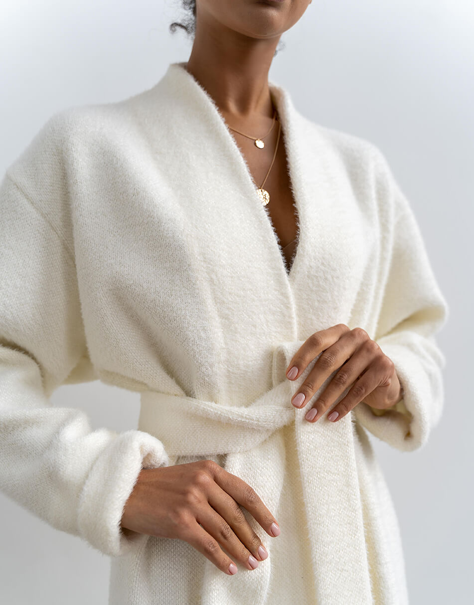 Розкішний кардиган об’ємного крою. Виконаний з дуже м’якої, приємної на дотик тканини. Кардиган виконаний із суцільнокроєних деталей.