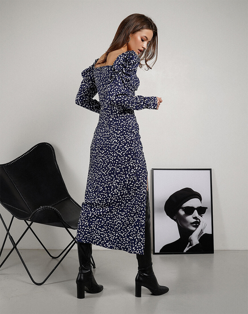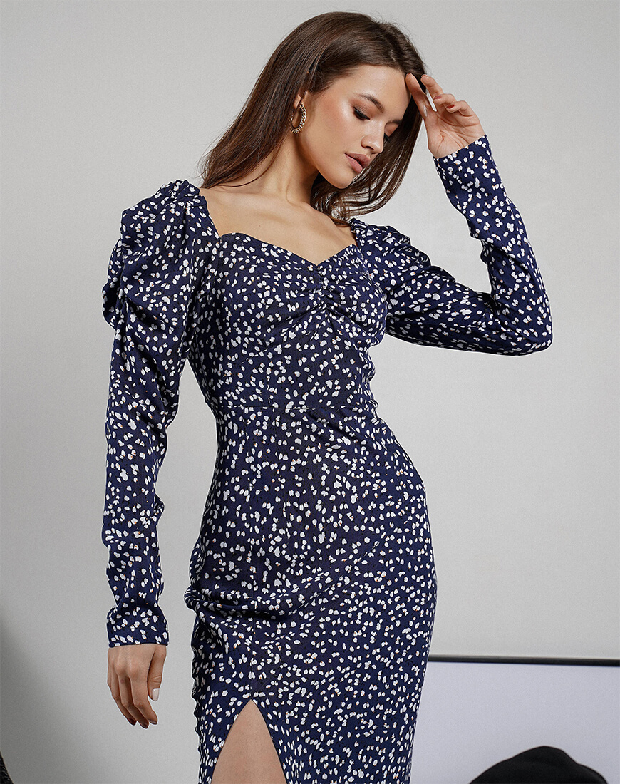 Силуетна сукня з рукавами-ліхтариками і яскравим принтом. Відрізна лінія під грудьми. Тканина віскоза з бавовною. Верх сукні виконано на підкладці. Застібається ззаду на потаємну блискавку.