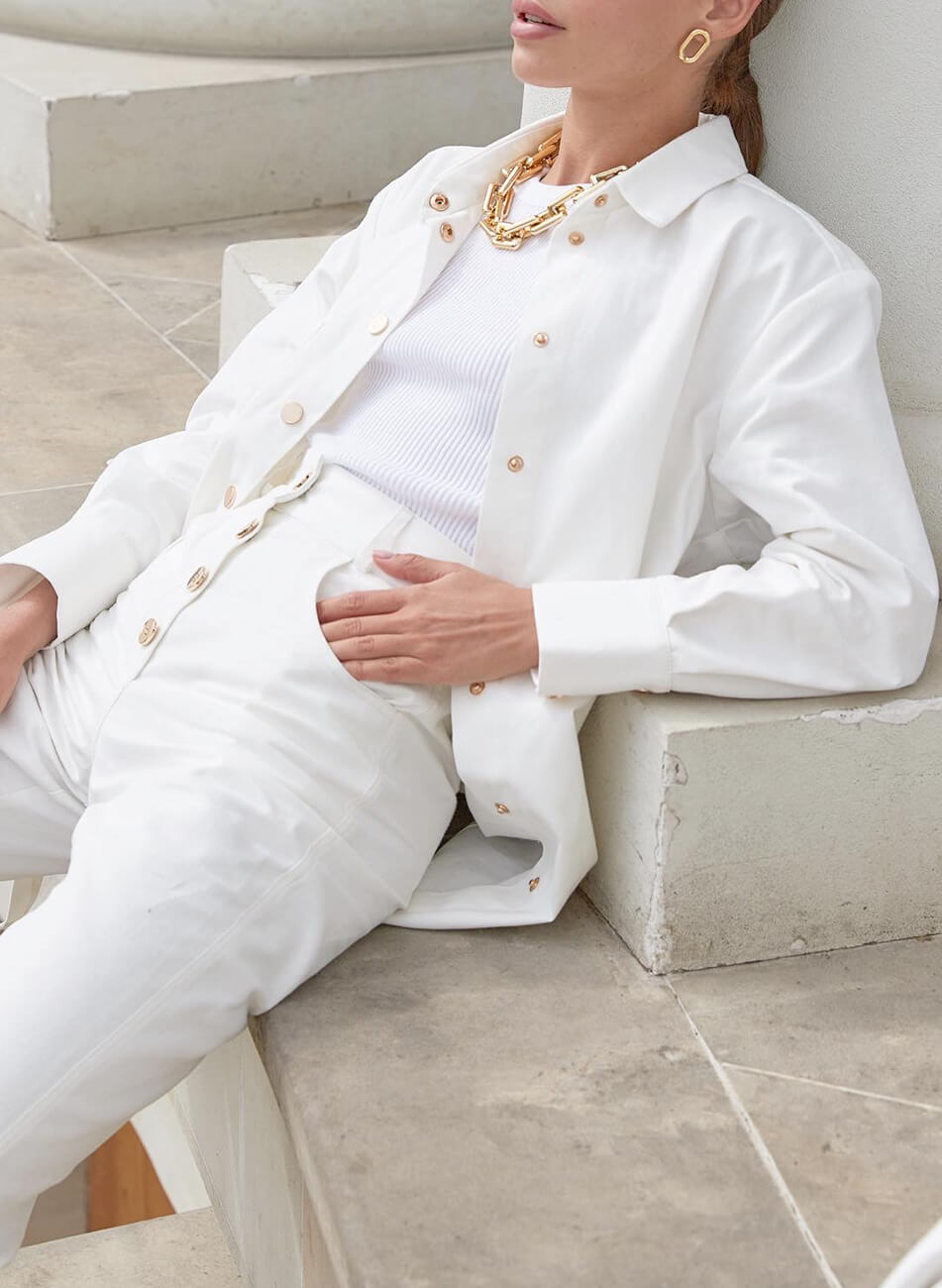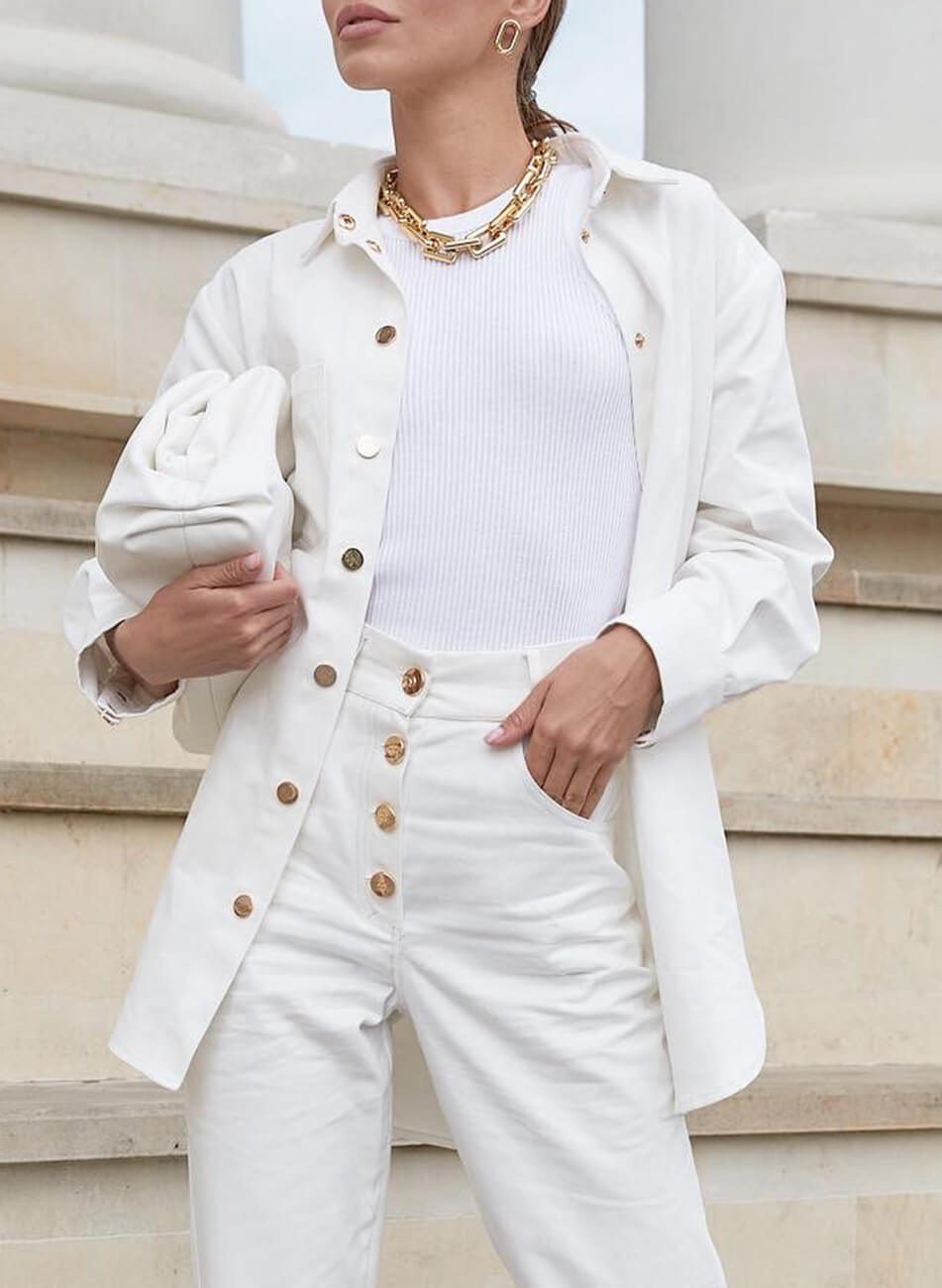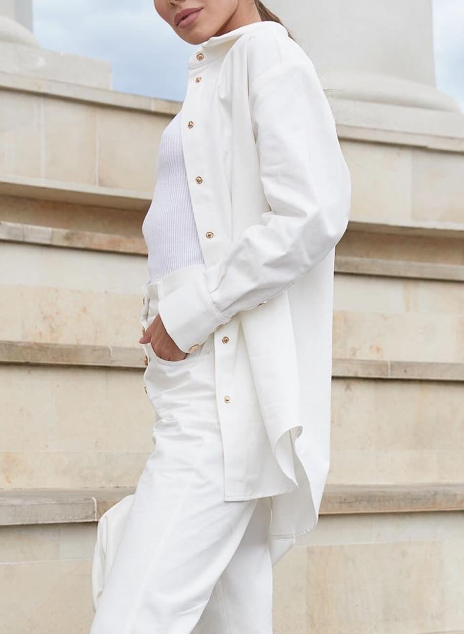 Джинсова сорочка об’ємного крою з накладною кишенею. Застібається на металеві кнопки. Довжина виробу по спинці 80 см.