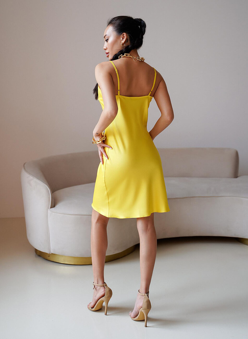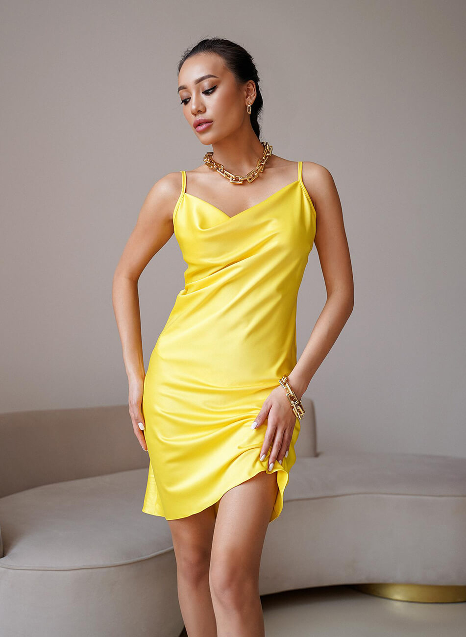 Легка, романтична сукня з ніжної шовкової тканини. Легка тканина ідеально підходить для літньої спеки. Бретелі регулюються. Ніяких зовнішніх швів. Сукня кроєна по-косій, що забезпечує ідеальне, м’яке прилягання по фігурі.