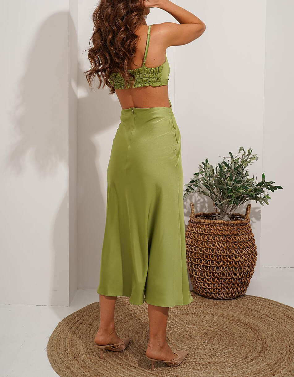 Легка, романтична сукня з ніжної тканини. Невагома тканина ідеально підходить для літньої спеки. Бретелі регулюються. Жодних зовнішніх швів. Сукня кроєна по-косій, що забезпечує ідеальне, м’яке прилягання по фігурі. Бра сукні подвійний і з гумкою по спинці.