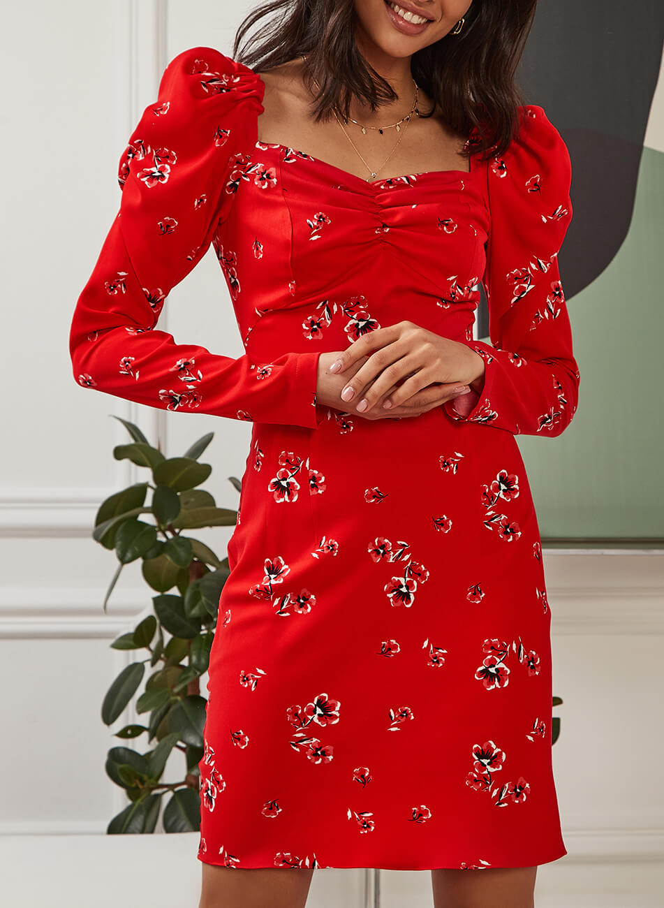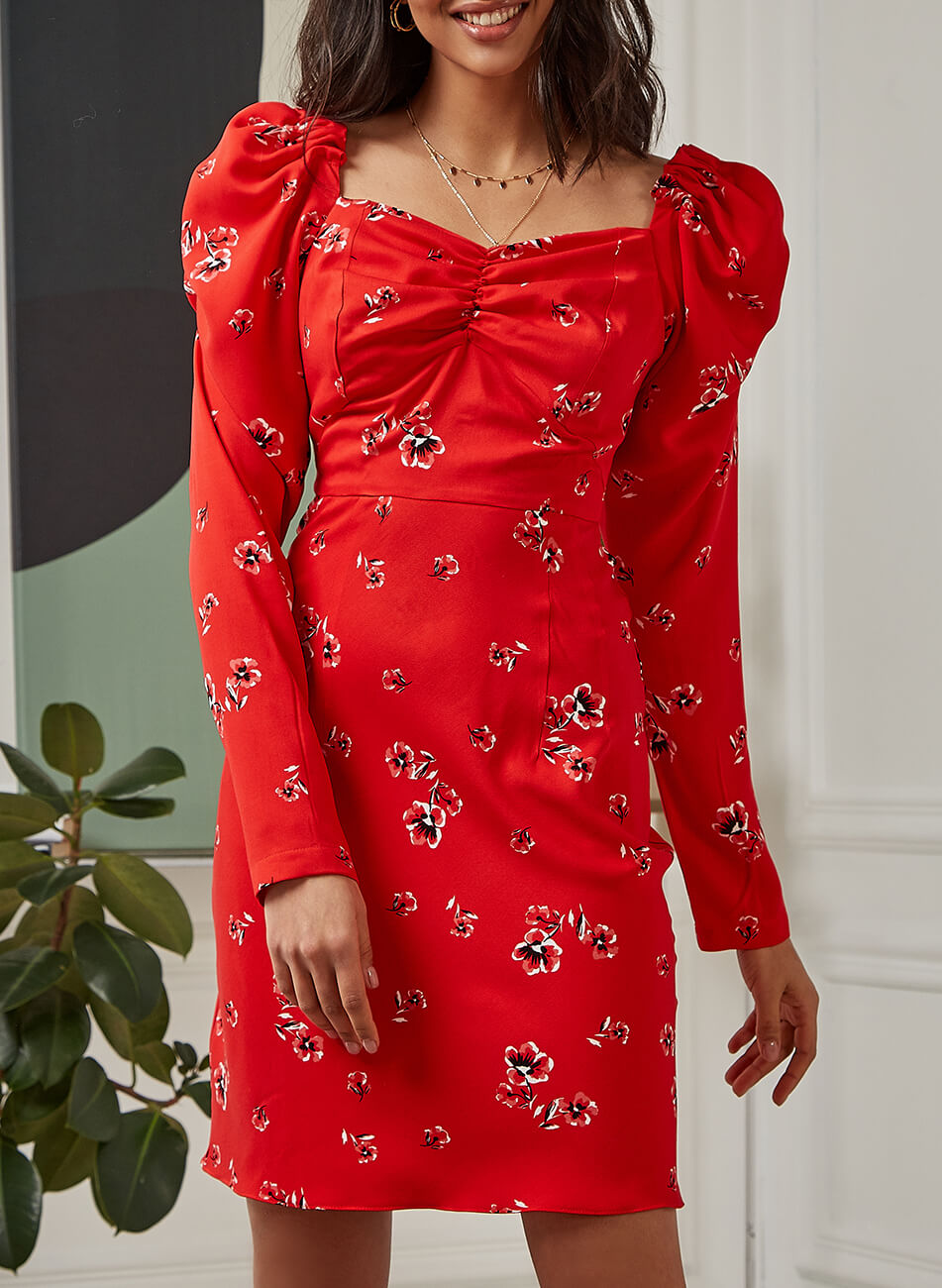 Силуетна сукня з рукавами-ліхтариками та яскравим принтом. Відрізна лінія під грудьми. Верх сукні виконаний на підкладці. Застібається ззаду на потайну блискавку.
