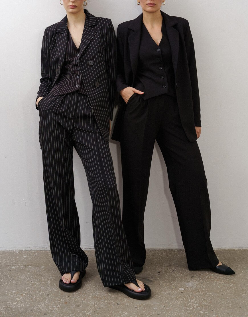 Склад: 35% вовна, 35% віскоза, 30% поліестер. Підкладка: 97% віскоза, 3% еластан