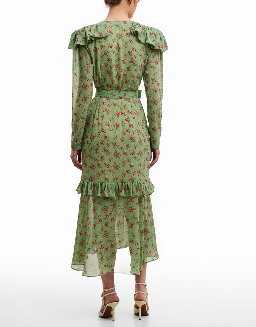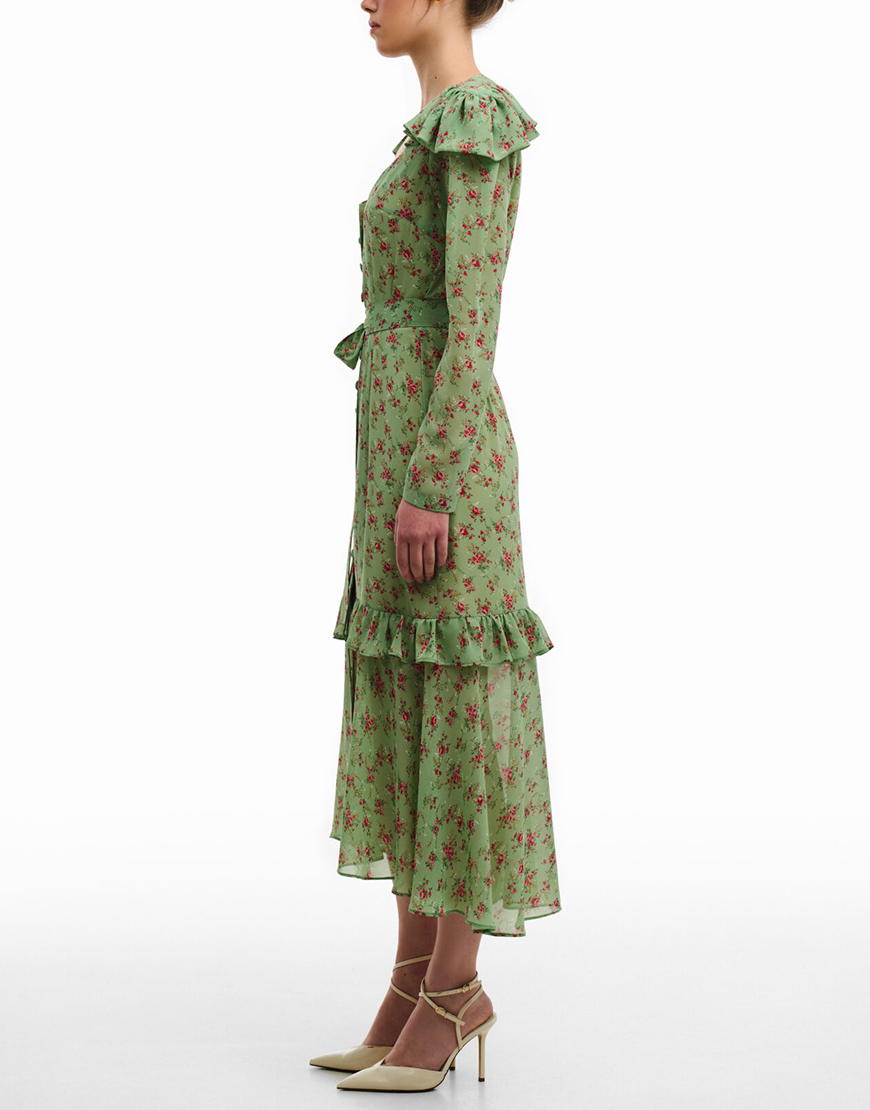 Сукня-міді з розкішного віскозного шифону. Сукня виконана на підкладці. Рукава з акцентними плечами створюють додатковий об’єм. Фігурний виріз по ліфу надає сукні особливої витонченості. Пояс в комплекті. Преміальна технологія виконання з усіма закритими швами. Довжина сукні 130 см. Сукня виконана з делікатного шифону, який не містить еластану. Саме тому, рекомендуємо обирати розмір, який буде вільний по вашій фігурі.