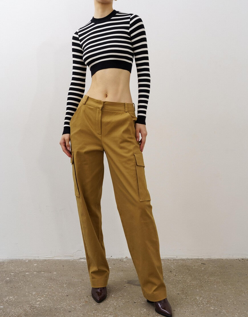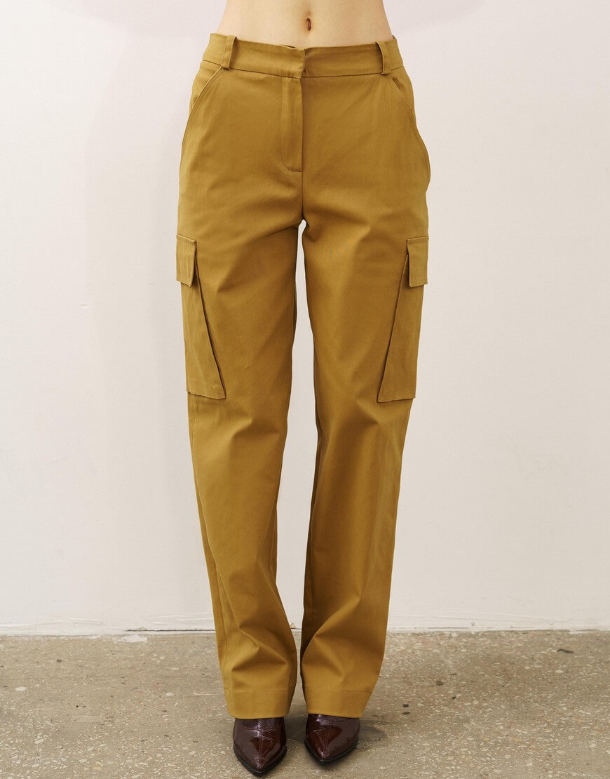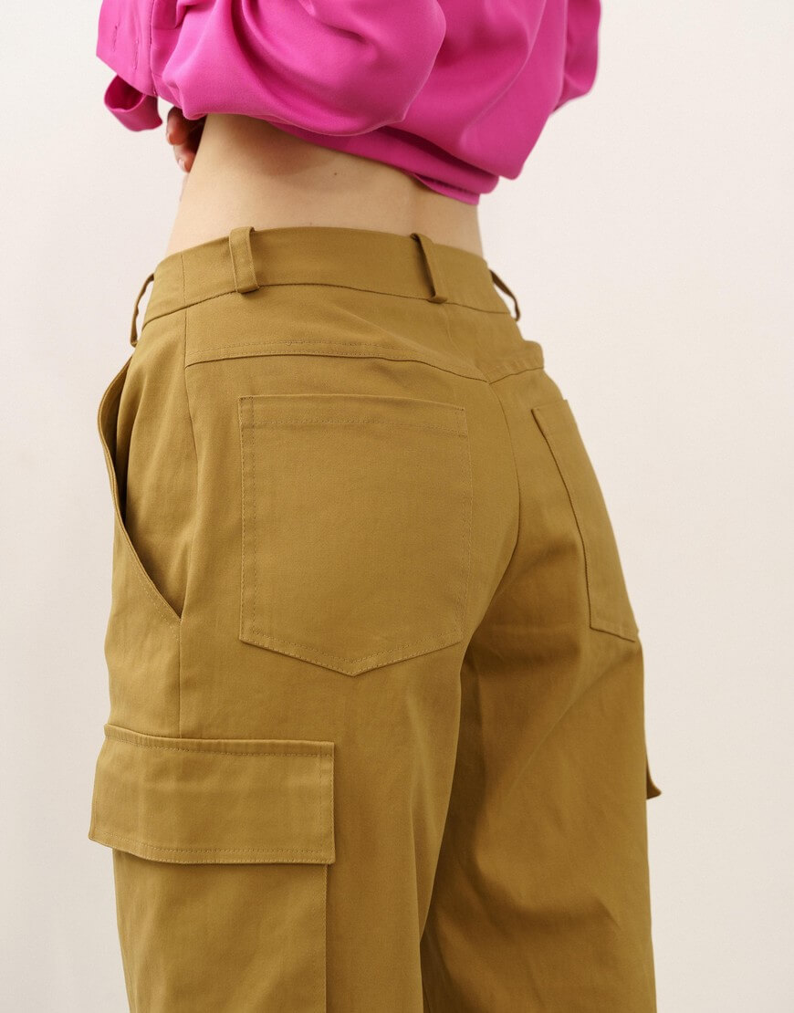 Штани-карго прямого крою з кишенями по боках. Висока лінія талії. Щільна бавовняна тканина.