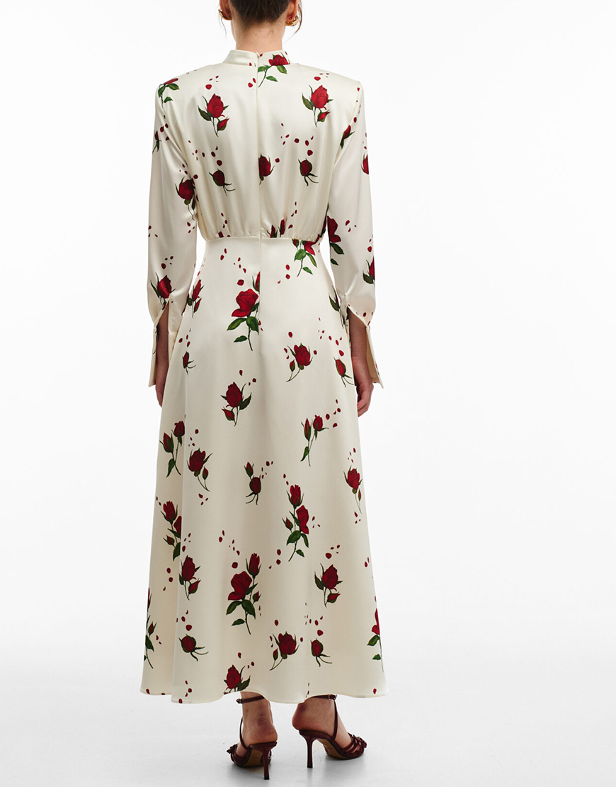 Доставка від 14 днівСукня максі довжини з середньої по щільності шовковистої тканини. Авторський принт сукні, створений спеціаольно для нової колекції бренду MY x MY. Сукня силуетного крою з драпіруванням по лінії талії, акцентними плечима та широкими манжетами. Застібається ззаду на потаємну блискавку. Сукня виконана на підкладці.