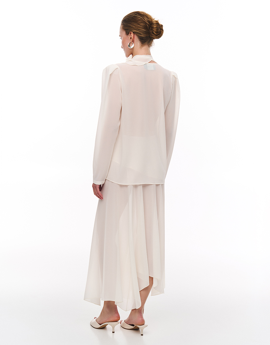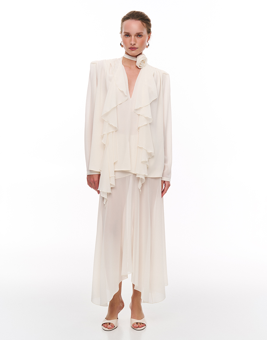 Шифонова спідниця об’ємного крою. Спідниця з високою лінією талії, виконана на резинці. Крій спідниці по-косій. Преміальне виконання з усіма закритими швами. Спідниця в наявності у 2 суміжних розмірах: XS/S, M/L.