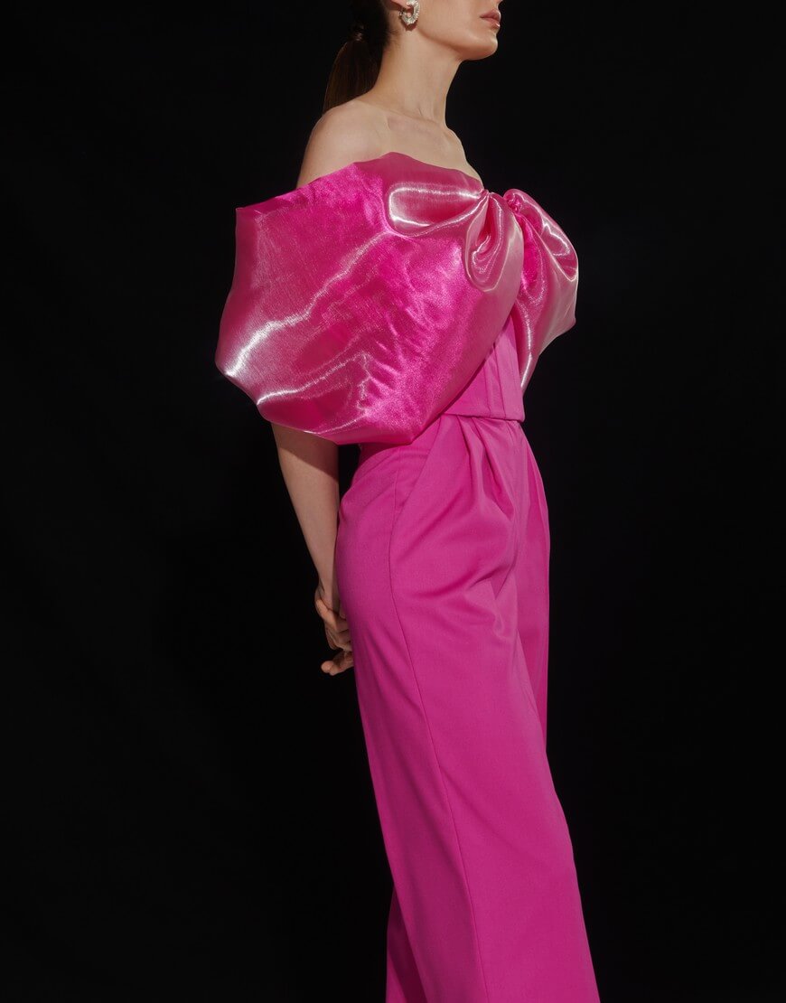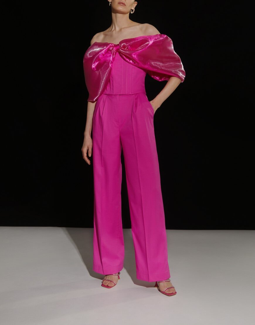 Корсет з м’якої бавовняної тканини. Застібається ззаду на металеву блискавку. Завдяки кісточкам, розміщених у рельєфних швах, топ бездоганно тримає форму. Корсет декоровано об’ємним бантом з органзи.
