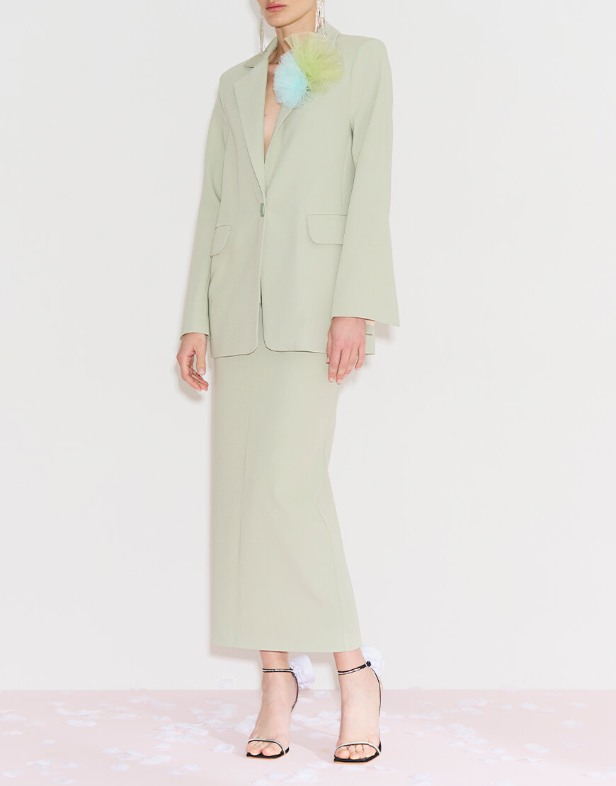 Пряма спідниця максі з шліцою по спинці. Висока лінія талії. Застібається спереду на блискавку. Довжина спідниці 99 см.