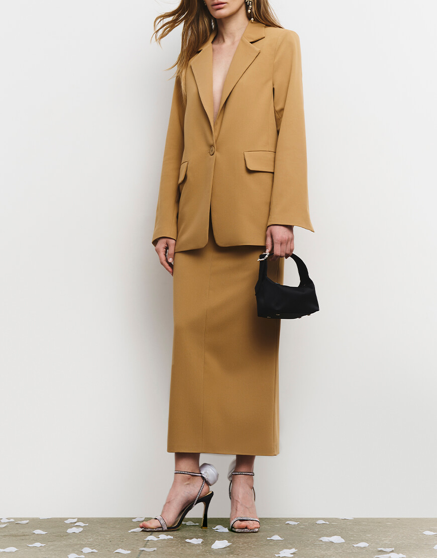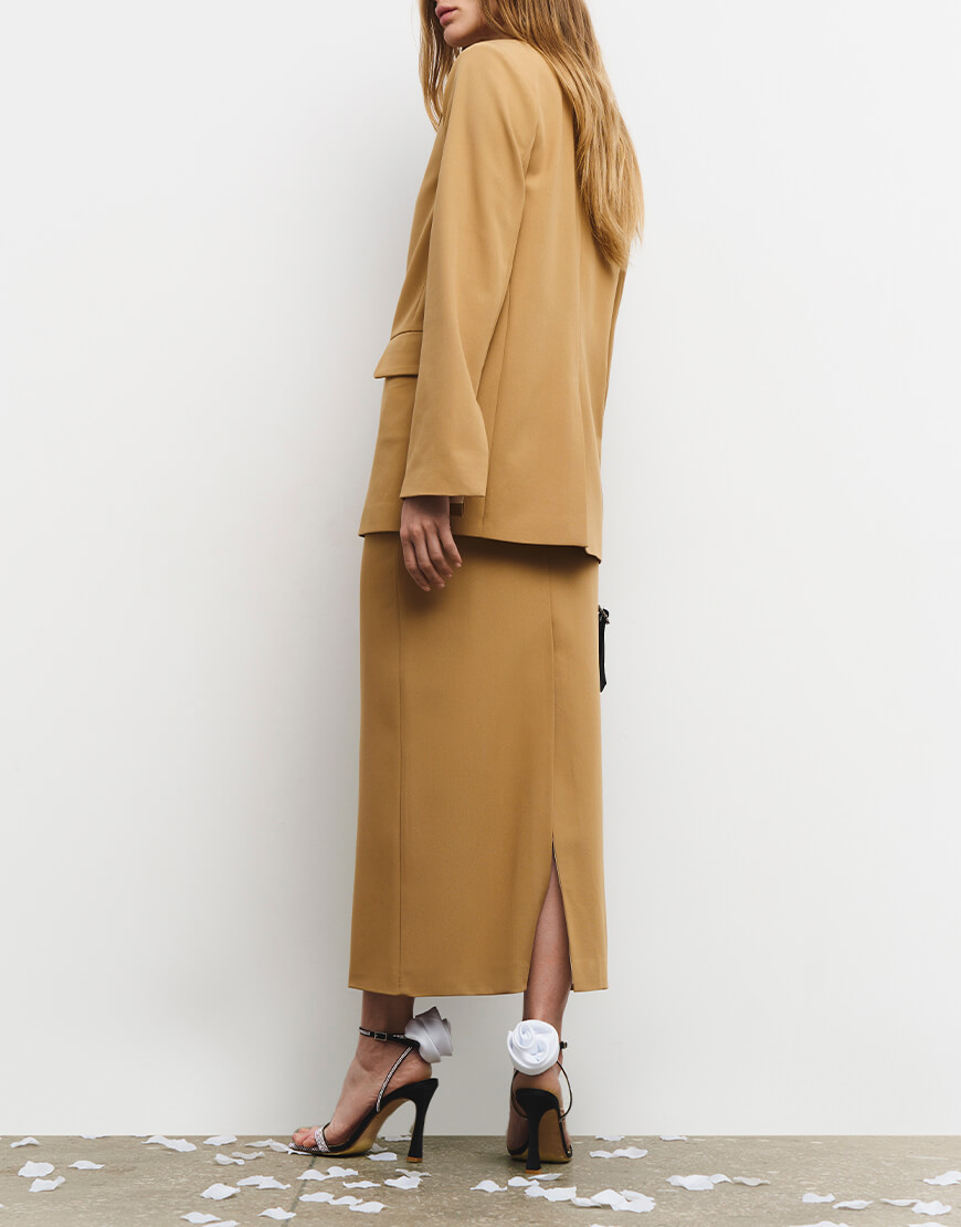 Пряма спідниця максі з шліцою по спинці. Висока лінія талії. Застібається спереду на блискавку. Довжина спідниці 99 см.