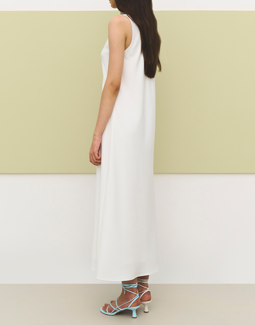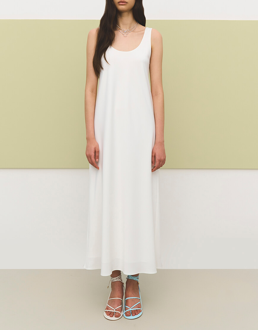 Сукня-майка у максі довжині з щільного сатину, що чудово тримає форму та не просвічує силует.